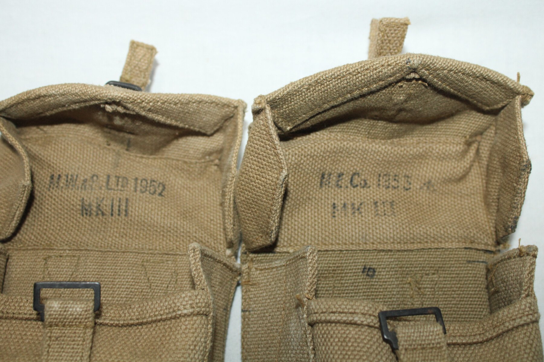 Paire de pouchs MKIII à sanglon, datées 1952 et 1953 fabrication différente.
