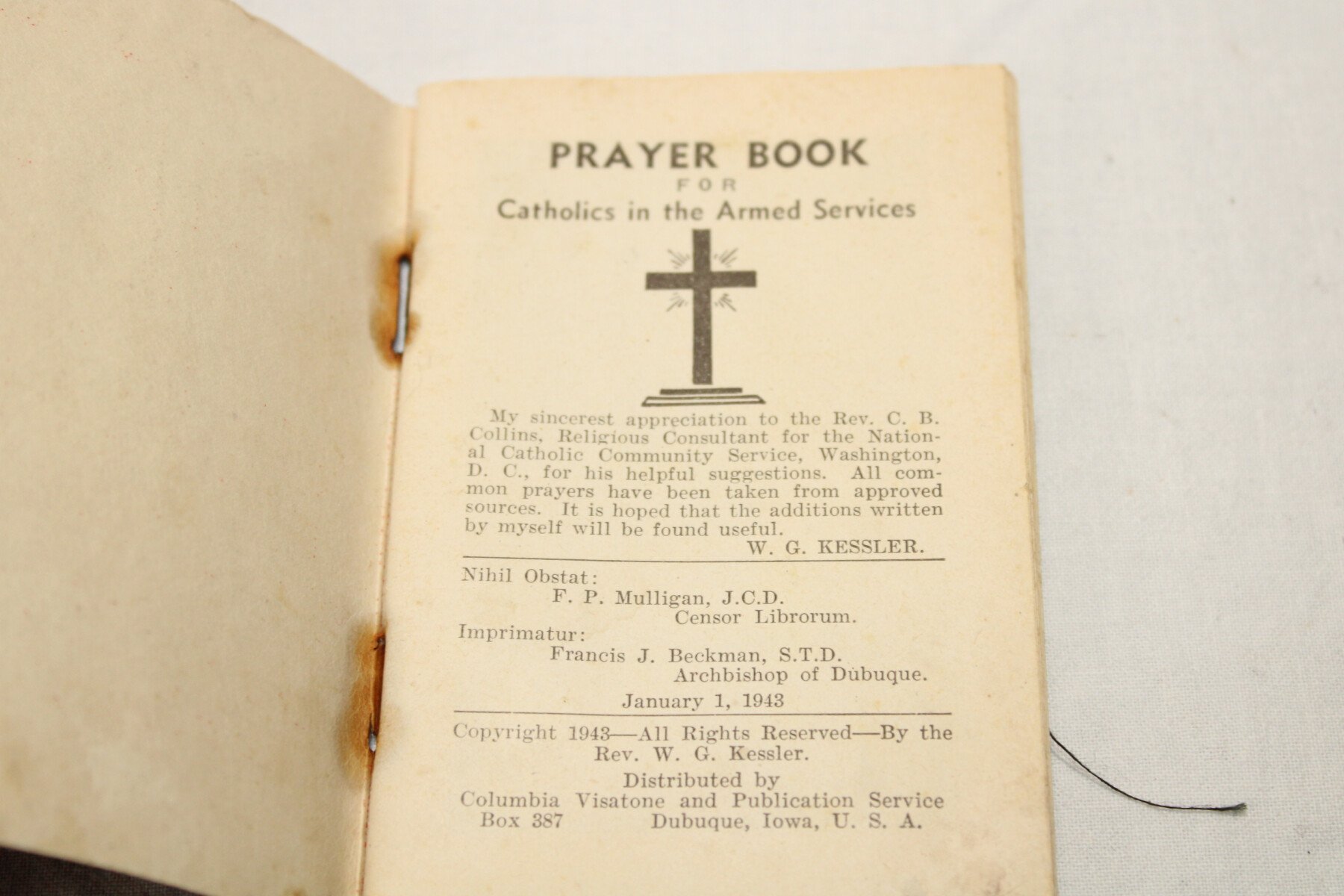 Petit livret de prière pour les catholiques dans l'US Army par le père Kessler édité en 1943. Pages détachées mais ensemble complet.