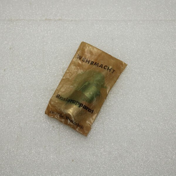Rasoir en métal dans son papier d'origine marqué Wehrmacht.