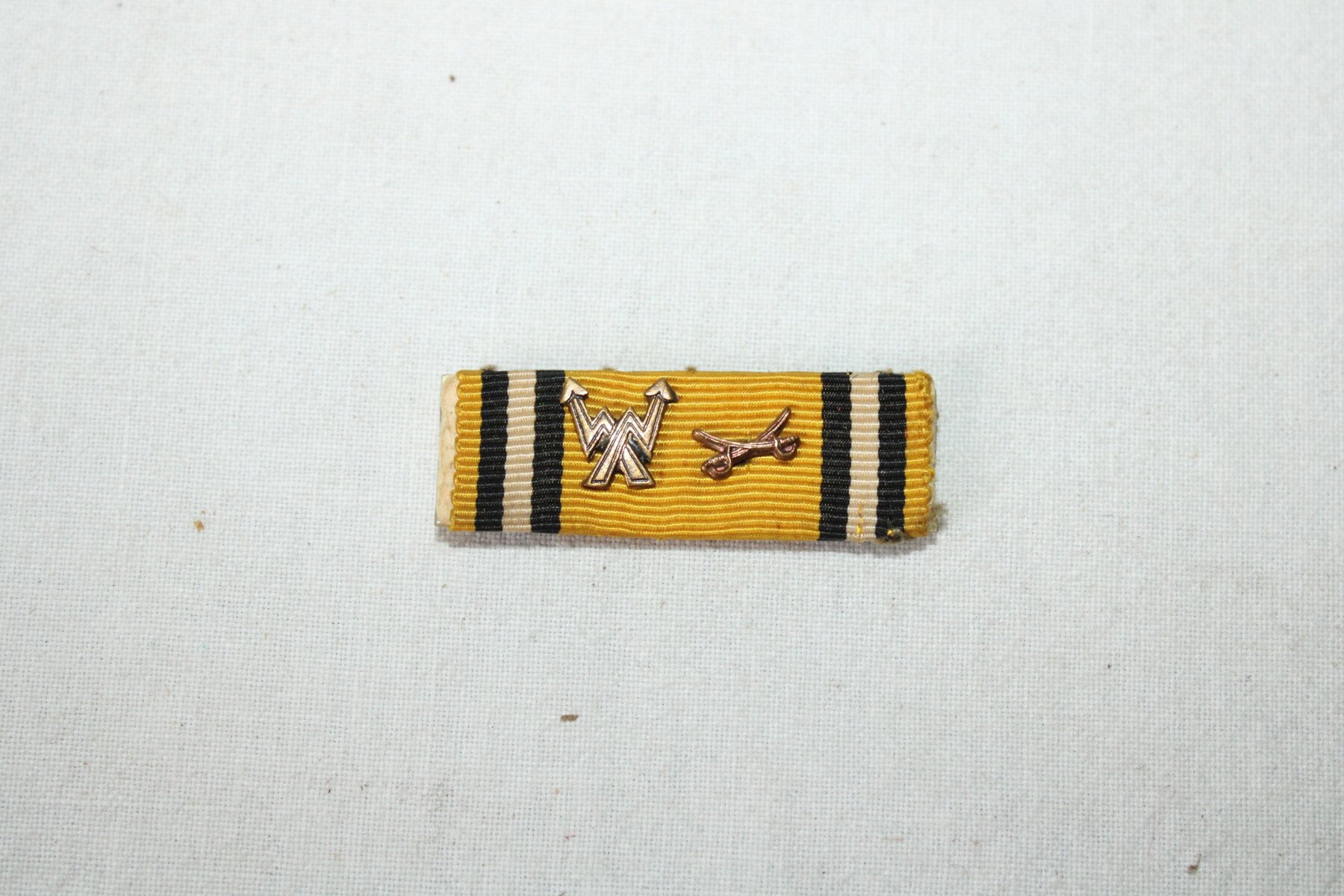 Ruban de médaille commémorative 1940-1945 avec agrafes sabre croisé pour les combattant et éclair pour les agents du service d'action et de renseignement.