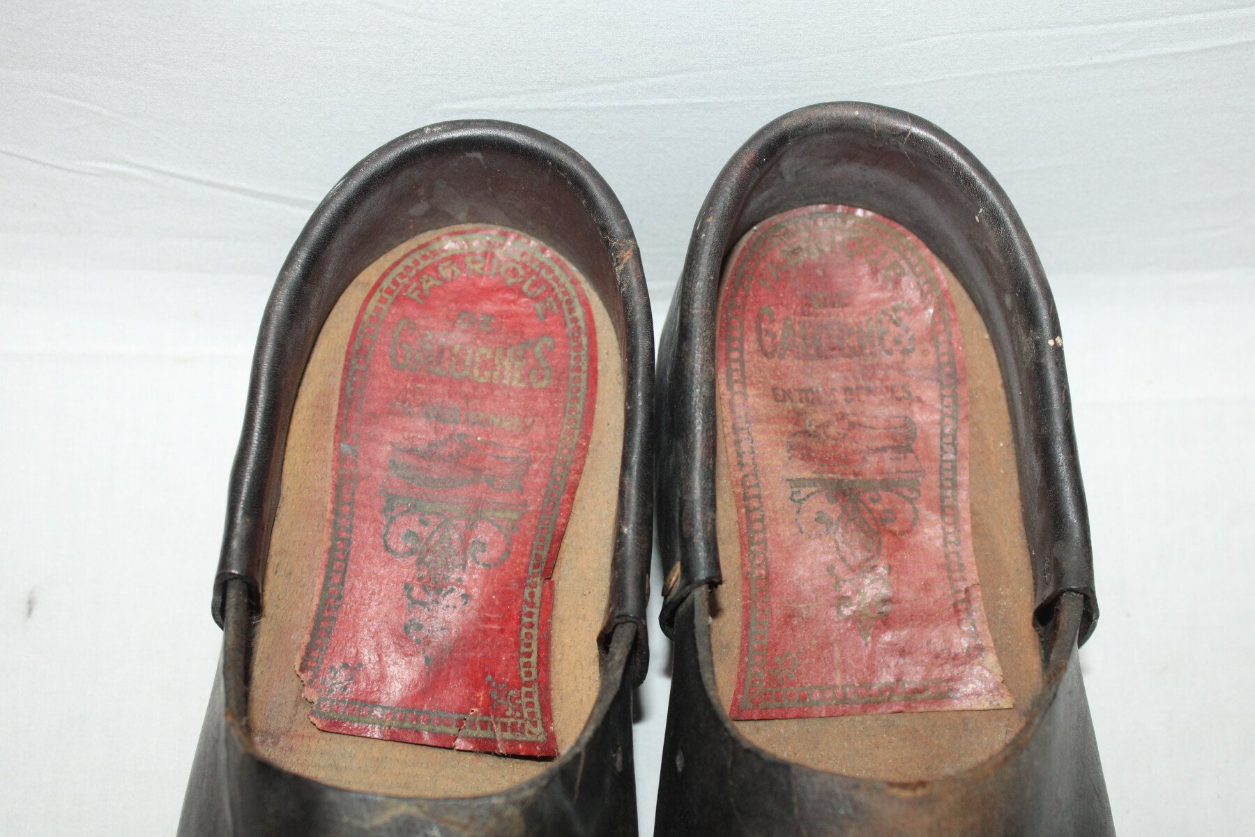 Paire de sabot-galoches modèle 1937 avec semelle en bois et caoutchouc. Bon état, taille 43/44.