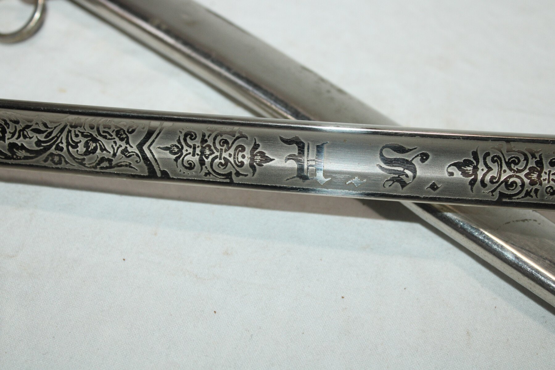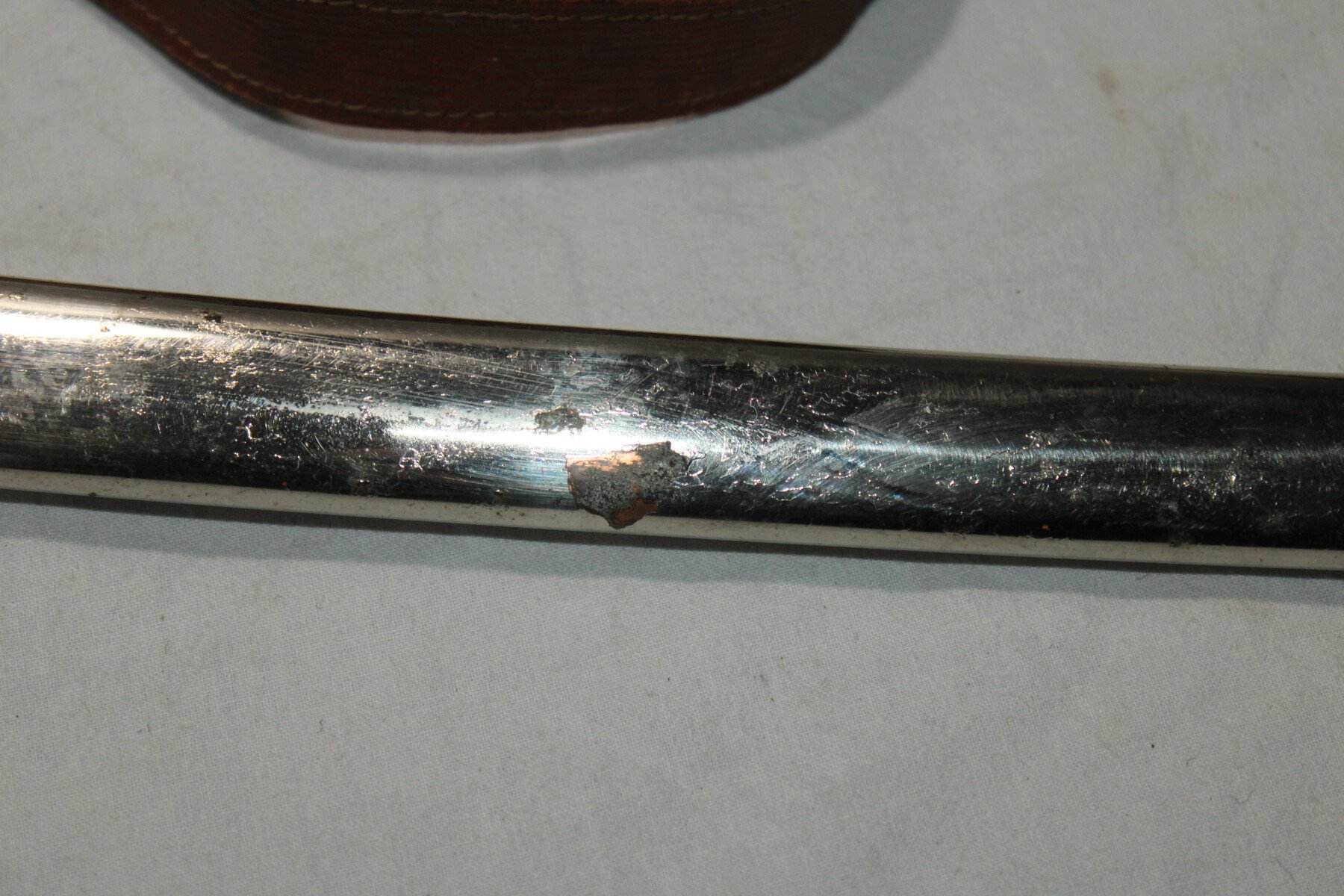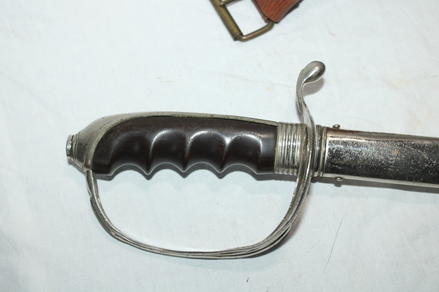 Sabre d'officier Américain avec sont ceinturon et porte sabre. Lame marqué du fabricant A.jacobs & Son Baltimore. Fourreau à deux anneaux, quelques manque de chrome. Pas de date visible....