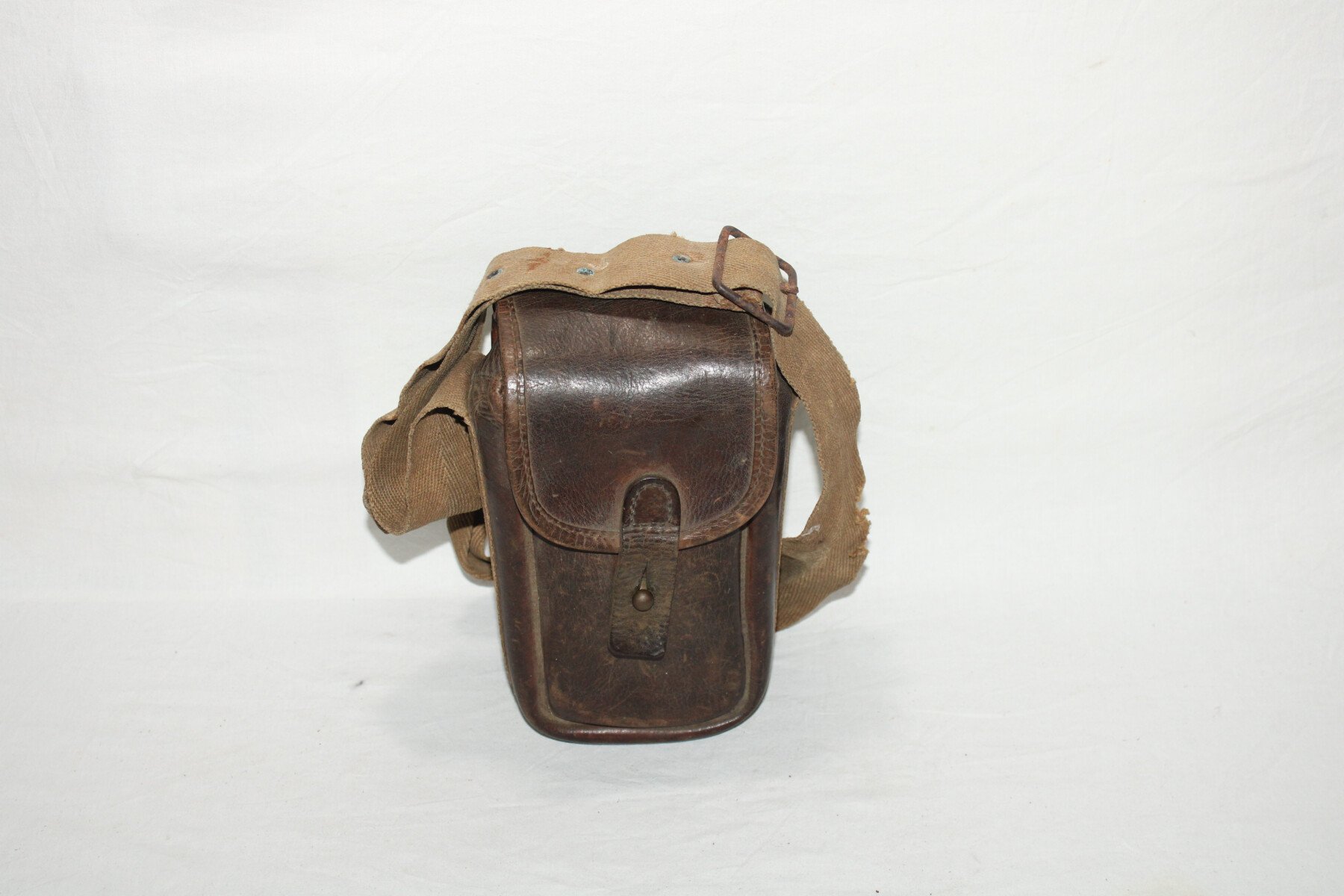 Beau porte chargeur modèle 1924 de fusil-mitrailleur 24/29 pour cavalerie. Complet. Cuir bien souple. Un œillet manquant. Sangle en bon état. Tampon de date présent.
