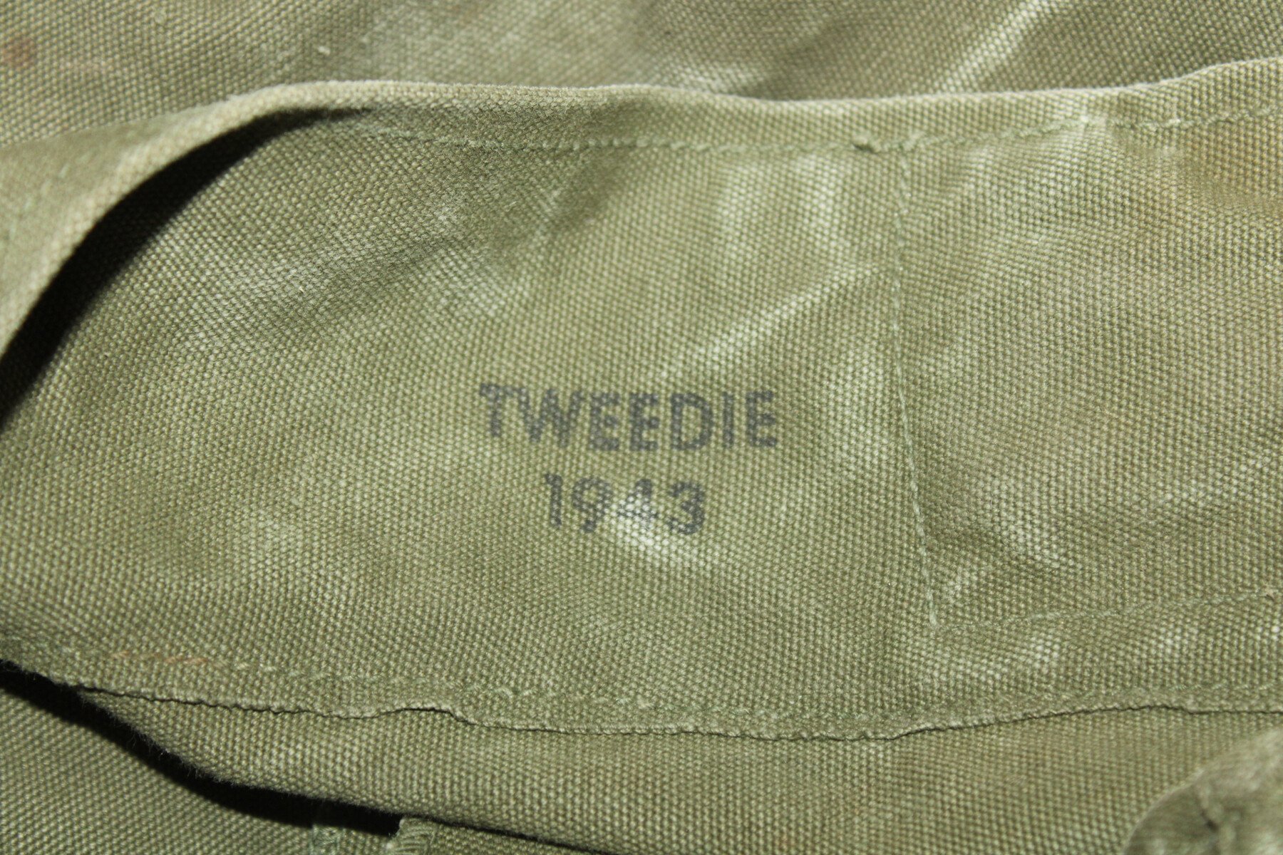 Sac à paquetage complet et bien marqué US avec à l'intérieur le marquage fabricant et la date 1943. Un accroc sur le dessous, nominatif et matriculé, recouvert à la peinture. Provient de camps...
