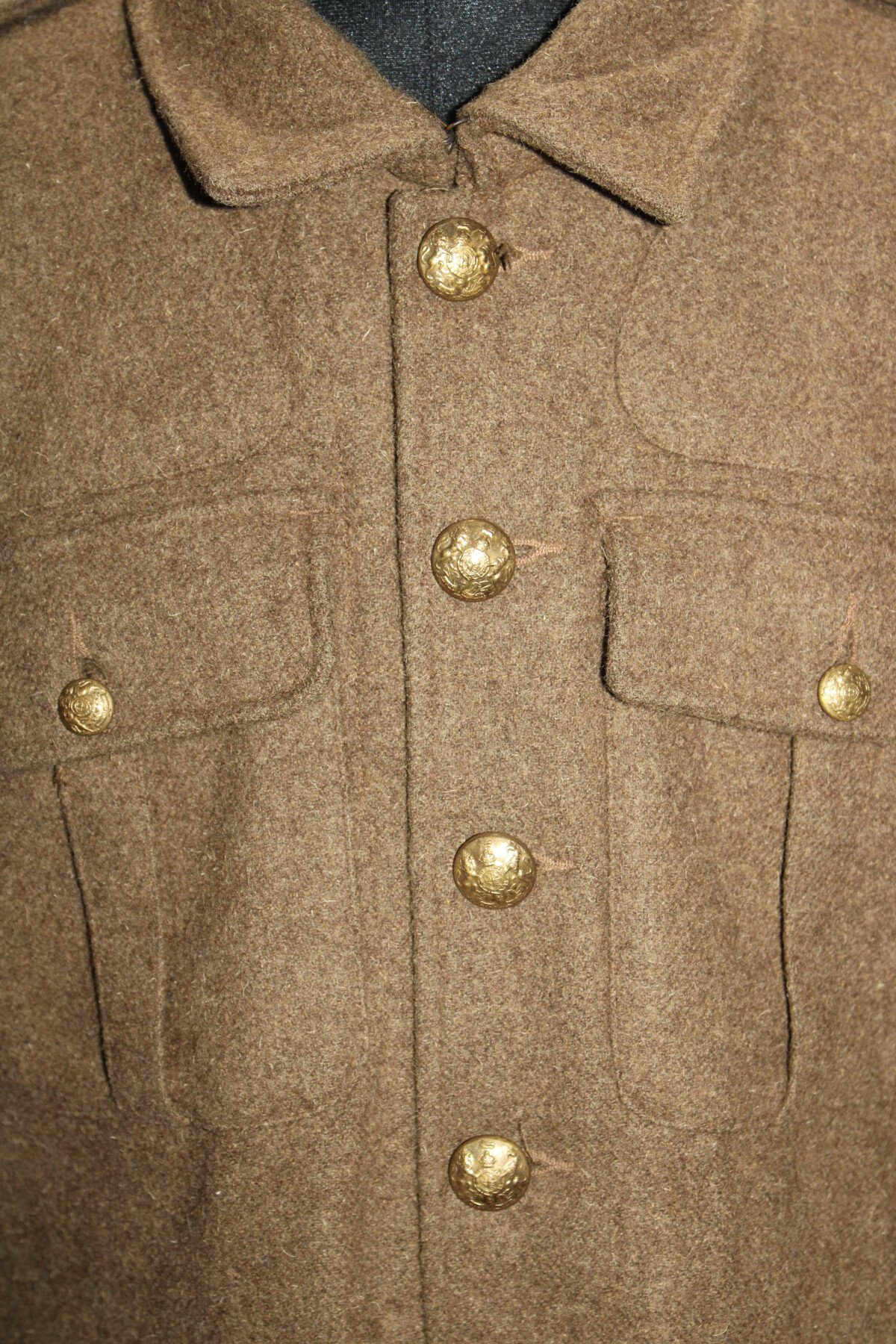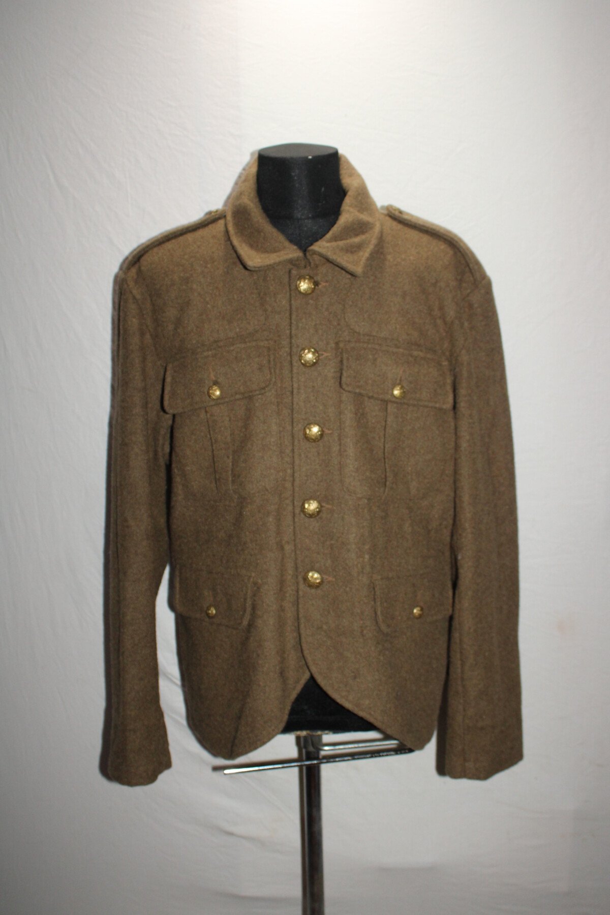 Service dress Ecossaise à pans arrondie modèle 1902. Bon état général. Boutons général service. Largeur d'épaule: 53cm, longueur de manche 68cm.