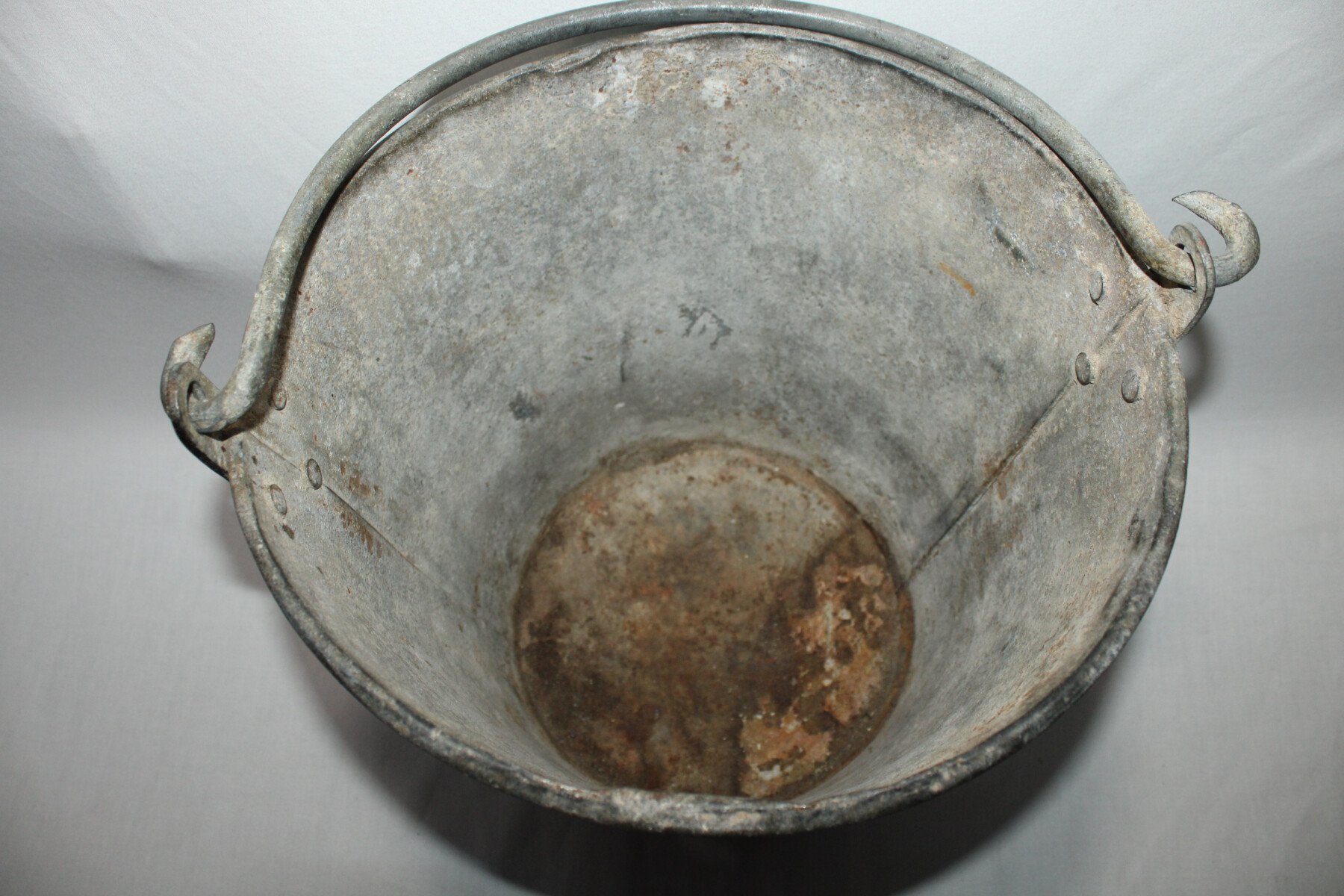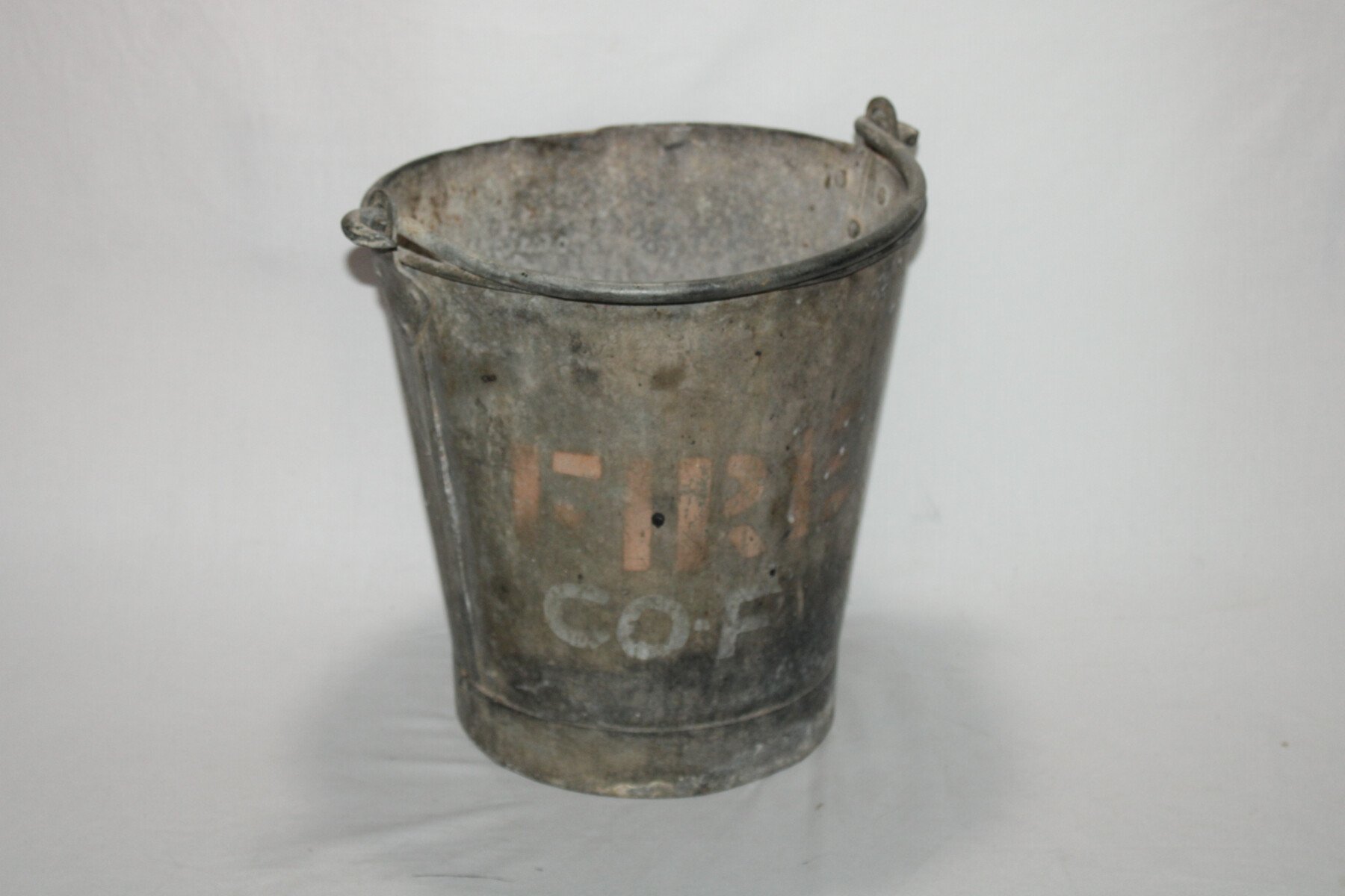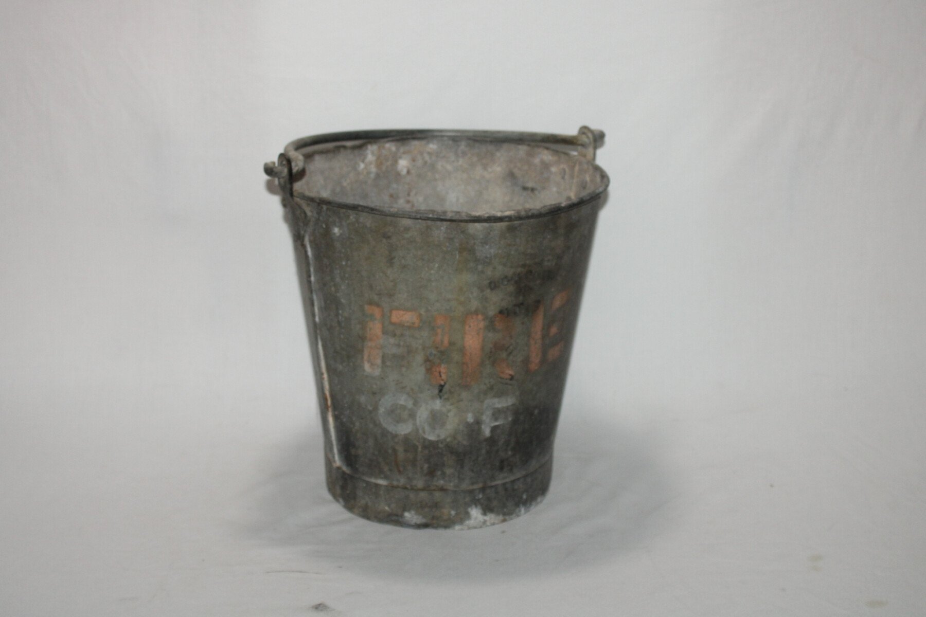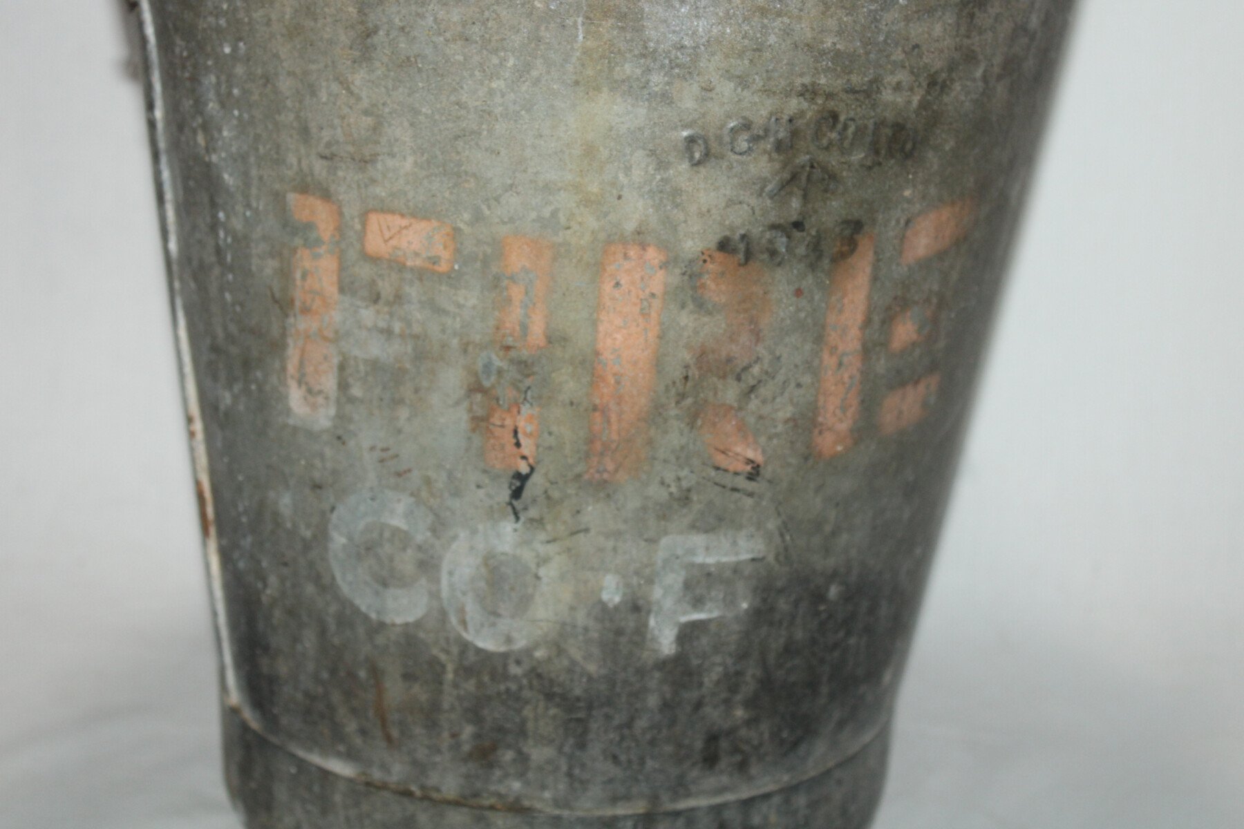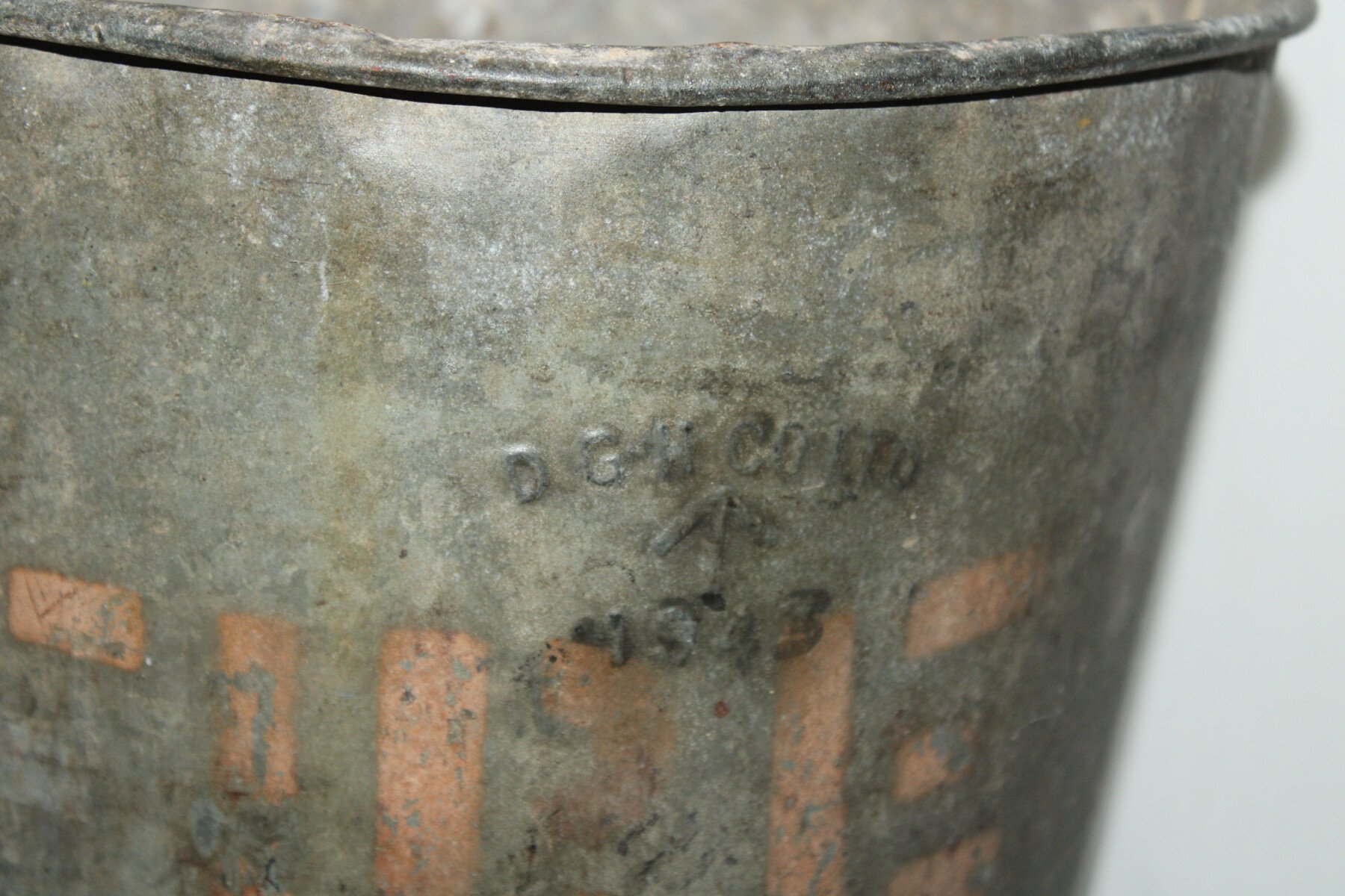 Seau à eau en métal. Fabrication anglaise, daté 1943. Non percé. Marqué Fire et Companie F.