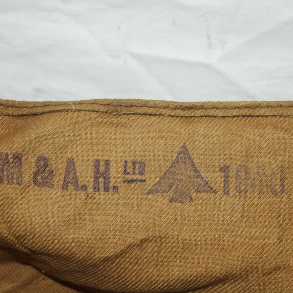 Musette à pansement Shell dressings, avec sa sangle de transport. Fabrication en toile et cuir, non en web. Datée 1940. Bel état général. Un passant en partie abimée.