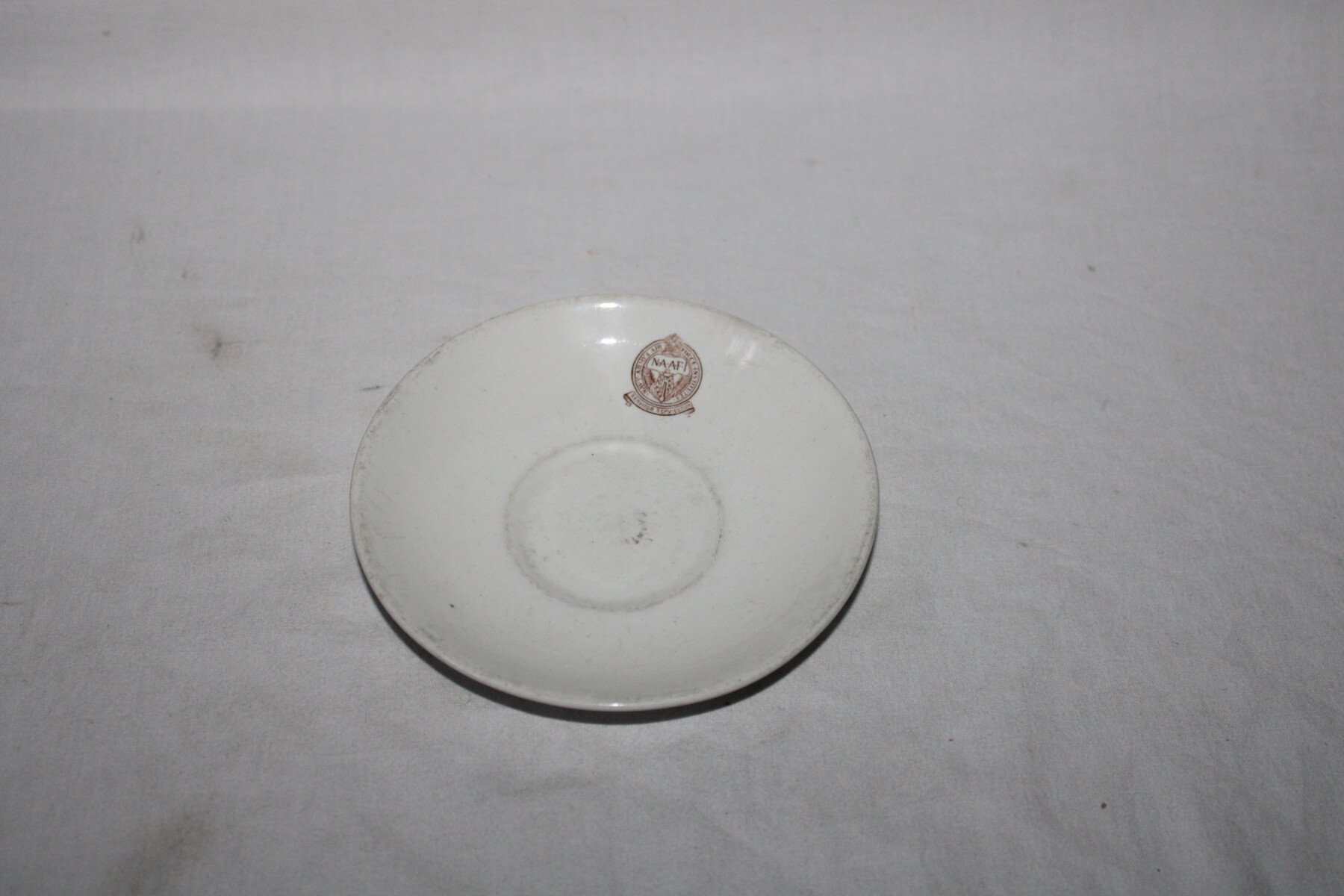 Petite sous tasse du Navy, Army and Air Force Institutes en faïence. Diamètre 14cm.Les Instituts de la Marine, de l'Armée et de l'Air ( NAAFI / ) sont une société créée par le gouvernement...