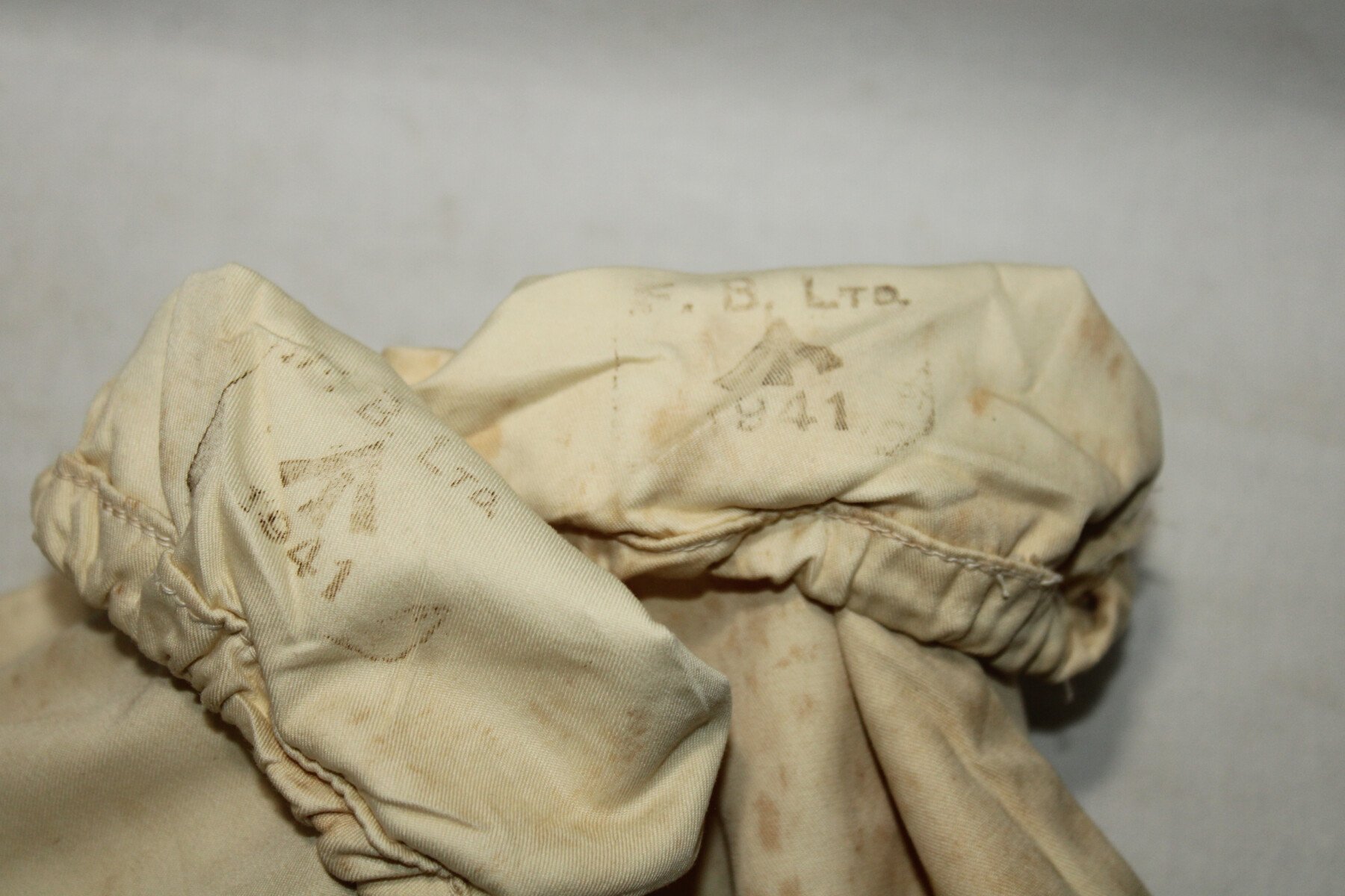 Paire de sur moufle en toile banc. Paire en bon état daté 1941.