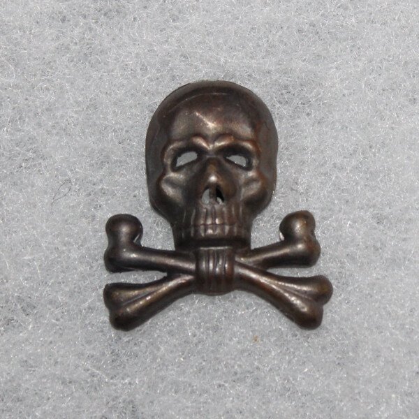 Insigne tête de mort métallique de la cavalerie de 14 portée par certaine unité de cavalerie /motorisée en 39/45de couleur grise