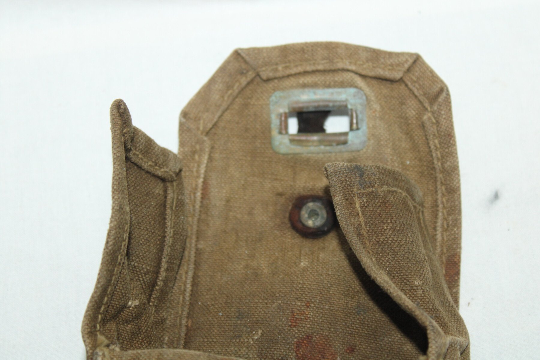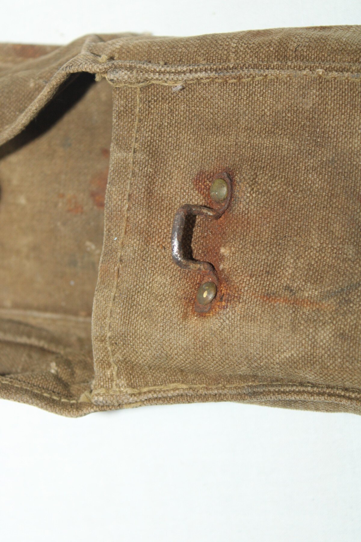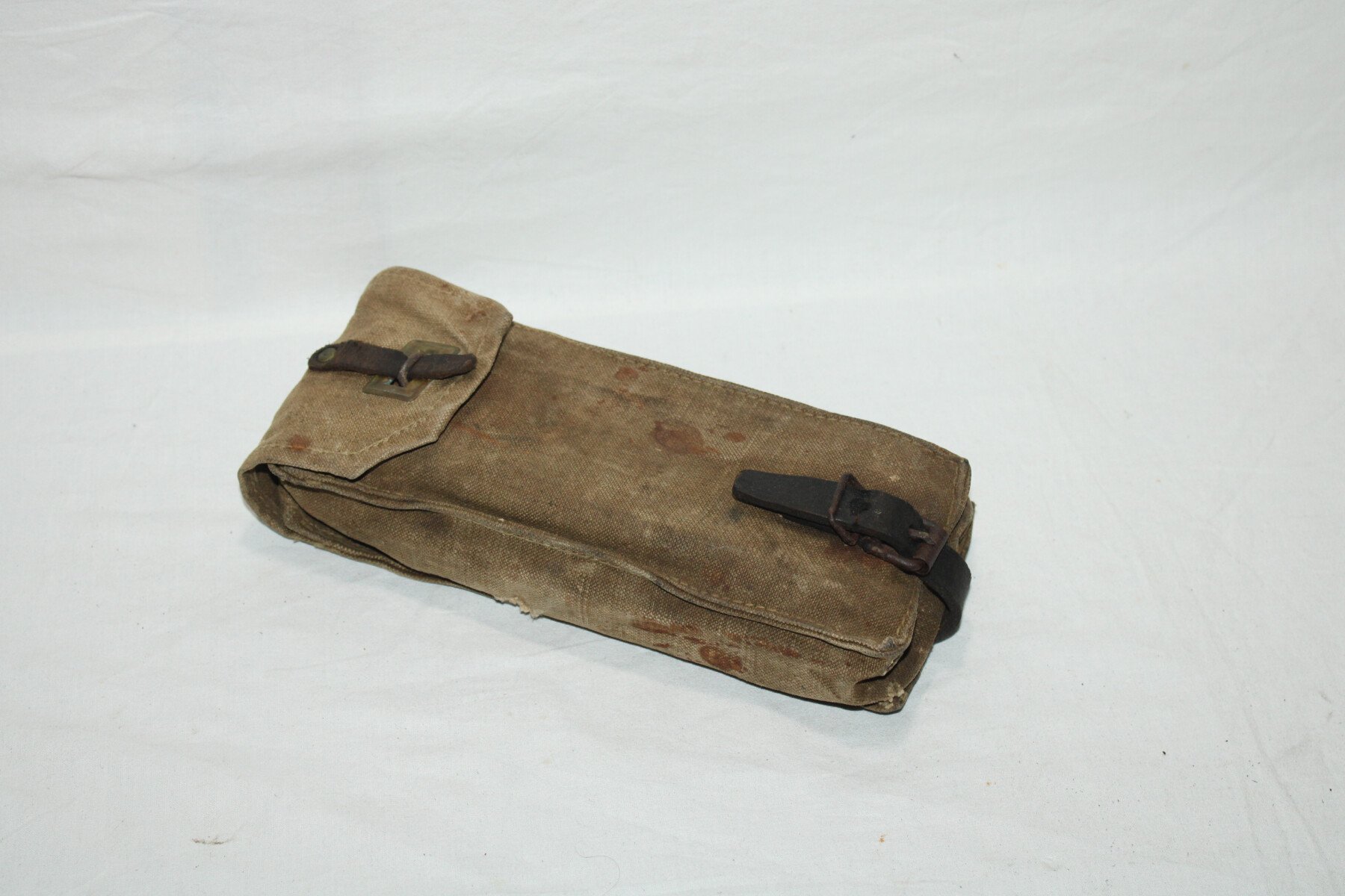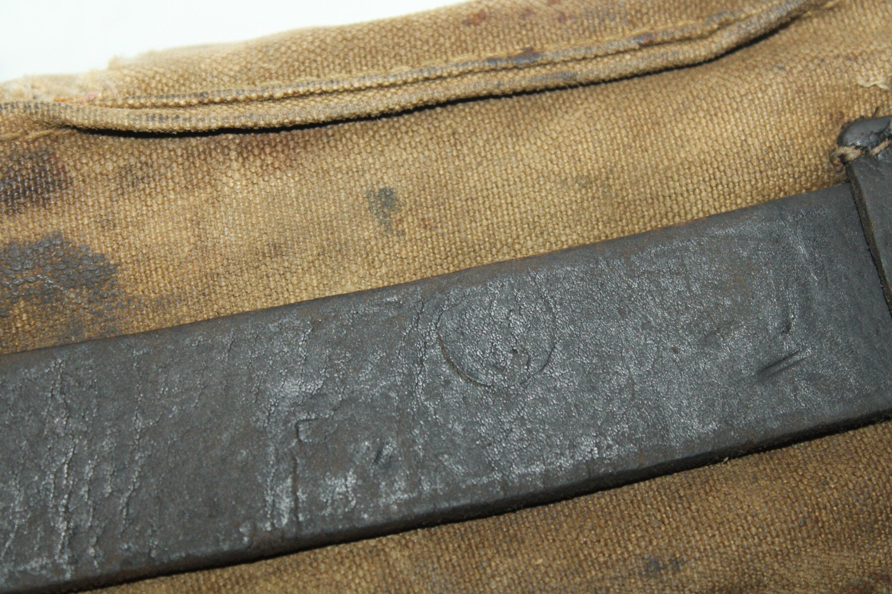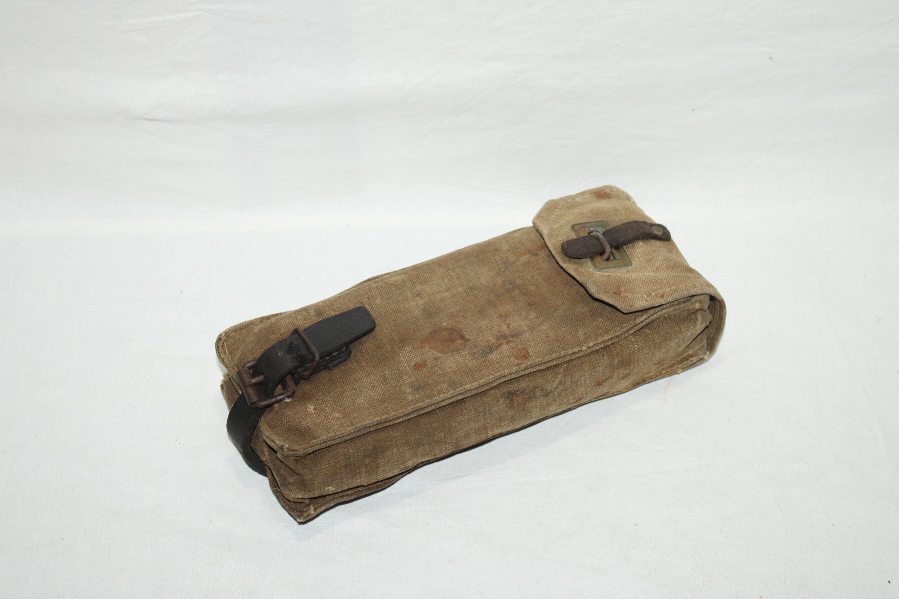 Trousse pour fiche pour unité collective de camouflage. Bon état, tous les cuirs sont présent, à nourrir. Pas de date visible. Un trou sur le coté.