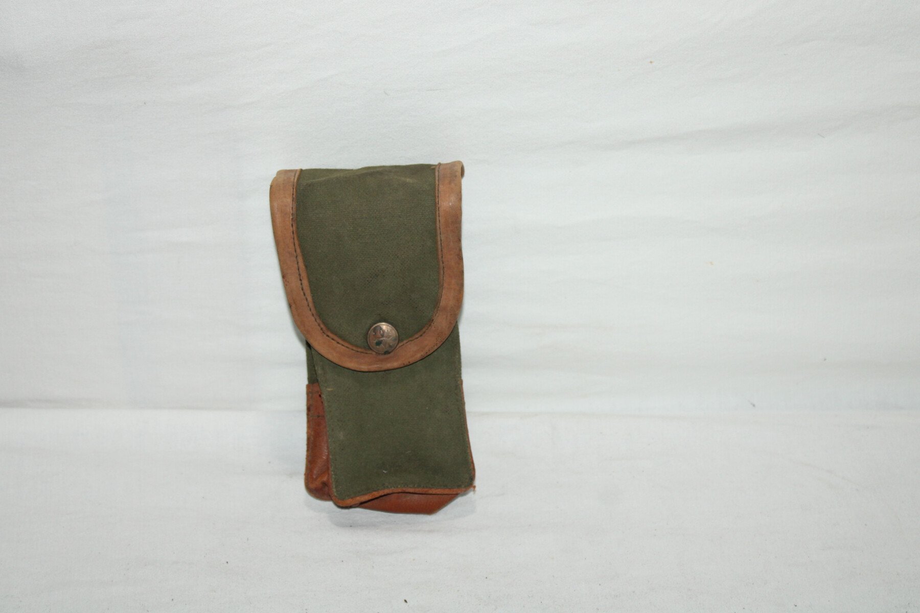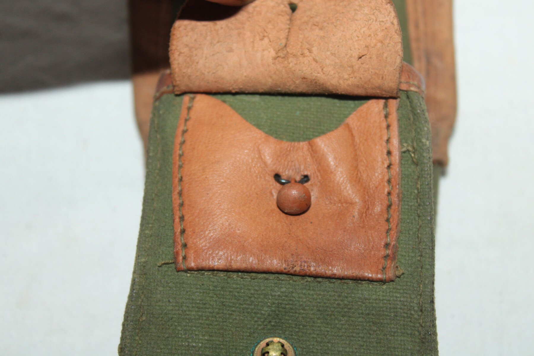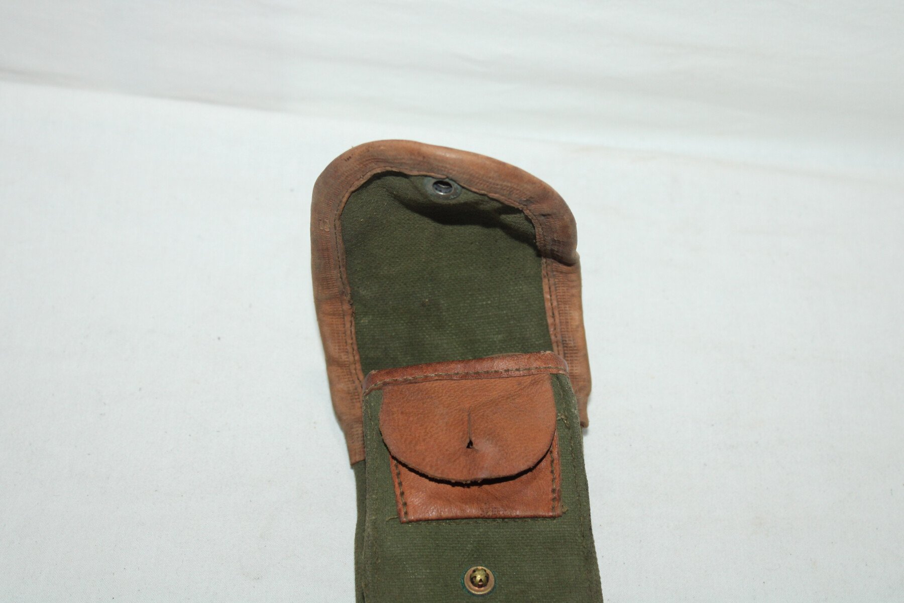 Trousse d'entretien pour le fusil semi automatique RCS 17, en toile verte, et en cuir. Languette en cuir et petit compartiment en cuir présent avec son bouton grelot. Avec nécessaire de...