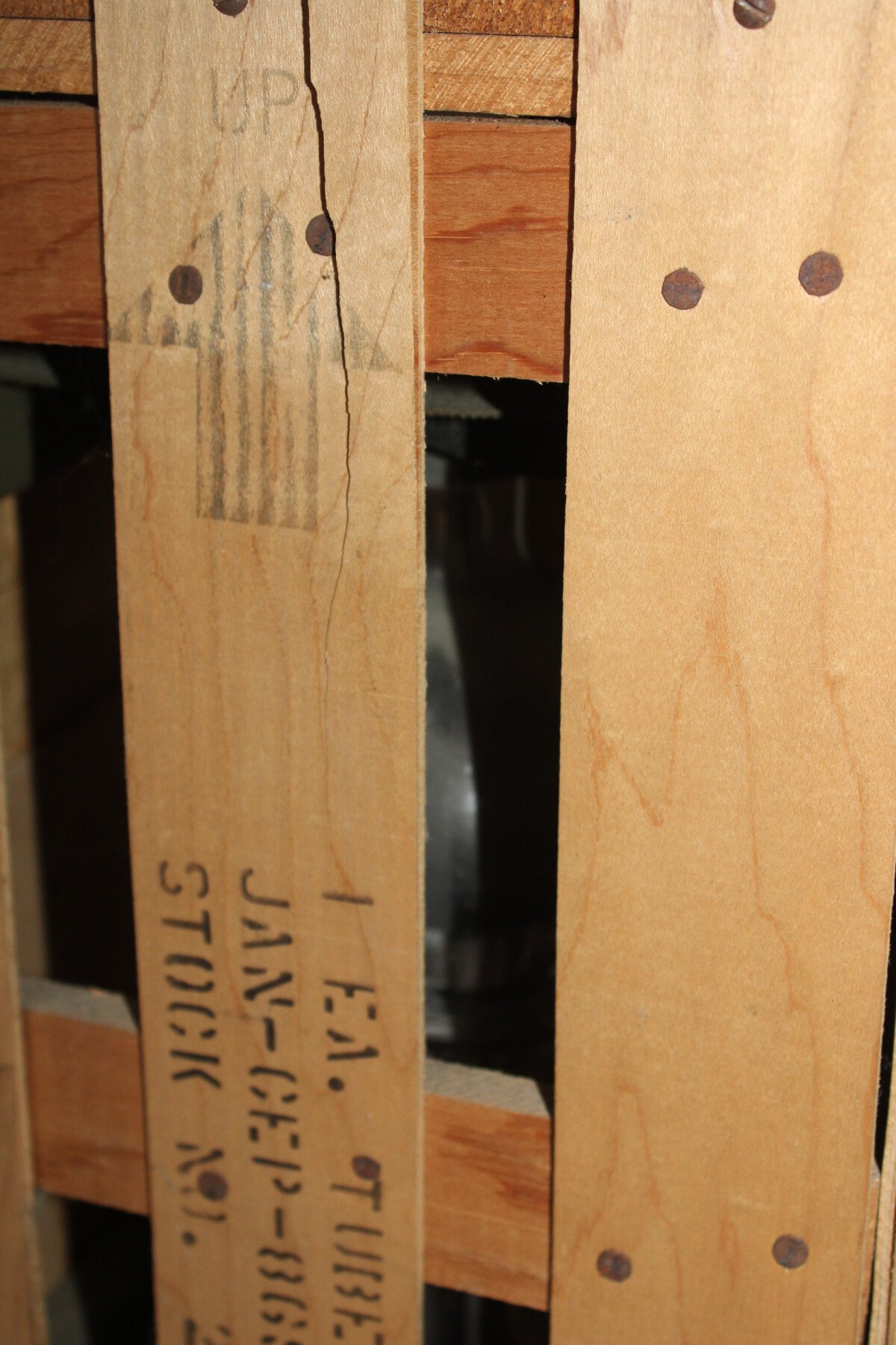 Lampe de signalisation JAN-CEP-869B. Dans sa boîte en bois d'origine avec poignée en métal. Marquages : EA. TYPE DE TUBE JAN-CEP- 869B.Insigne du « Corps des transmissions » en haut....