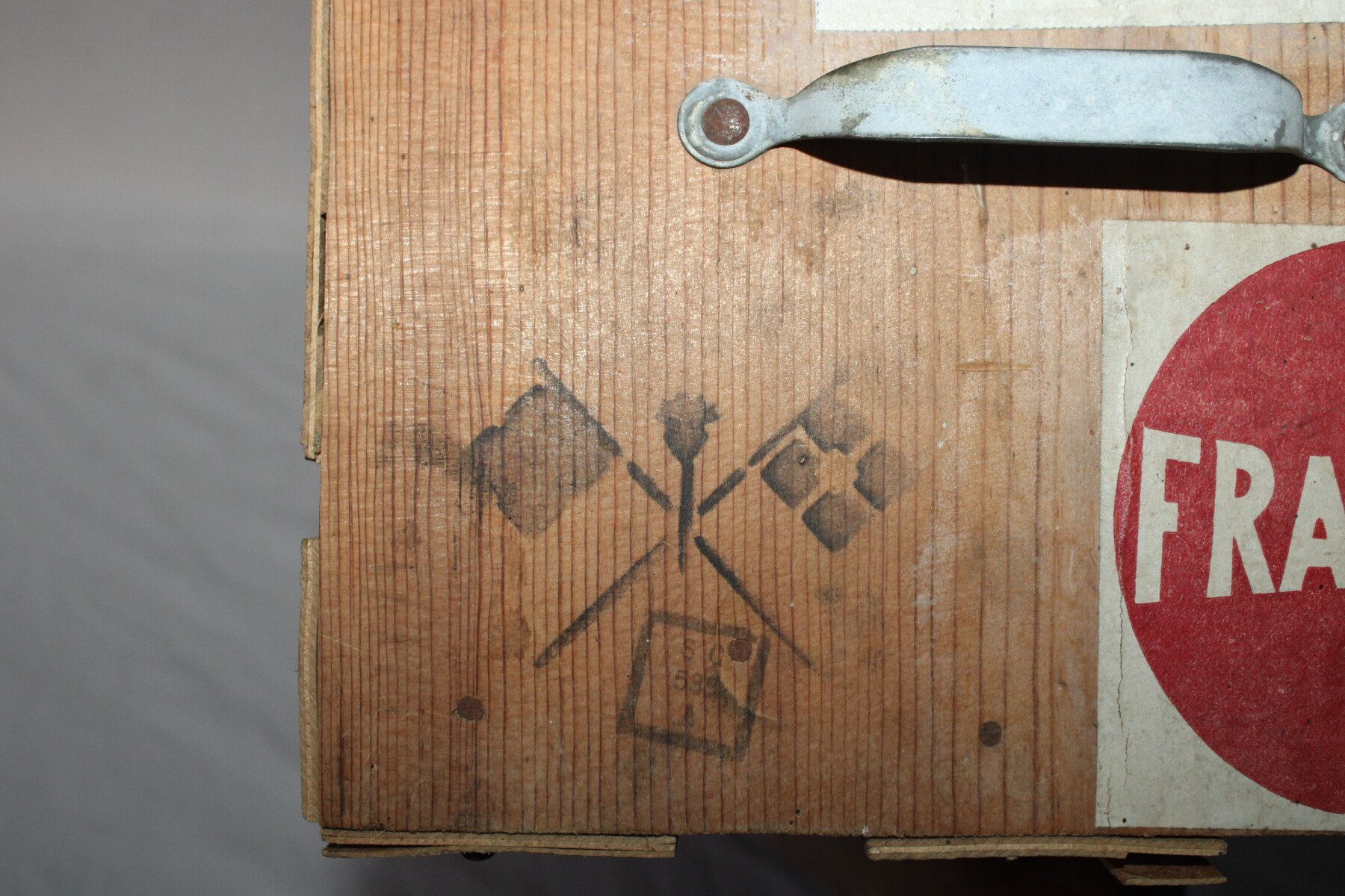 Insigne du « Corps des transmissions » en haut. Dimensions : 48 cm x 25 cm. Dans son état d'origine, jamais ouvert. Toutes les étiquettes sont présentes d'origines.