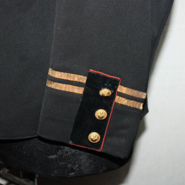 Tunique modèle 1893 de lieutenant du Génie. Pattes de collet avec chiffre 2. Intérieur du col abimé. Etiquette de tailleur au col. Usure au niveau des galons. Datée 1912. Taille: largeur d'épaules 40 cm à plat. Longueur de manche: 61 cm. Hauteur totale: 69 cm.