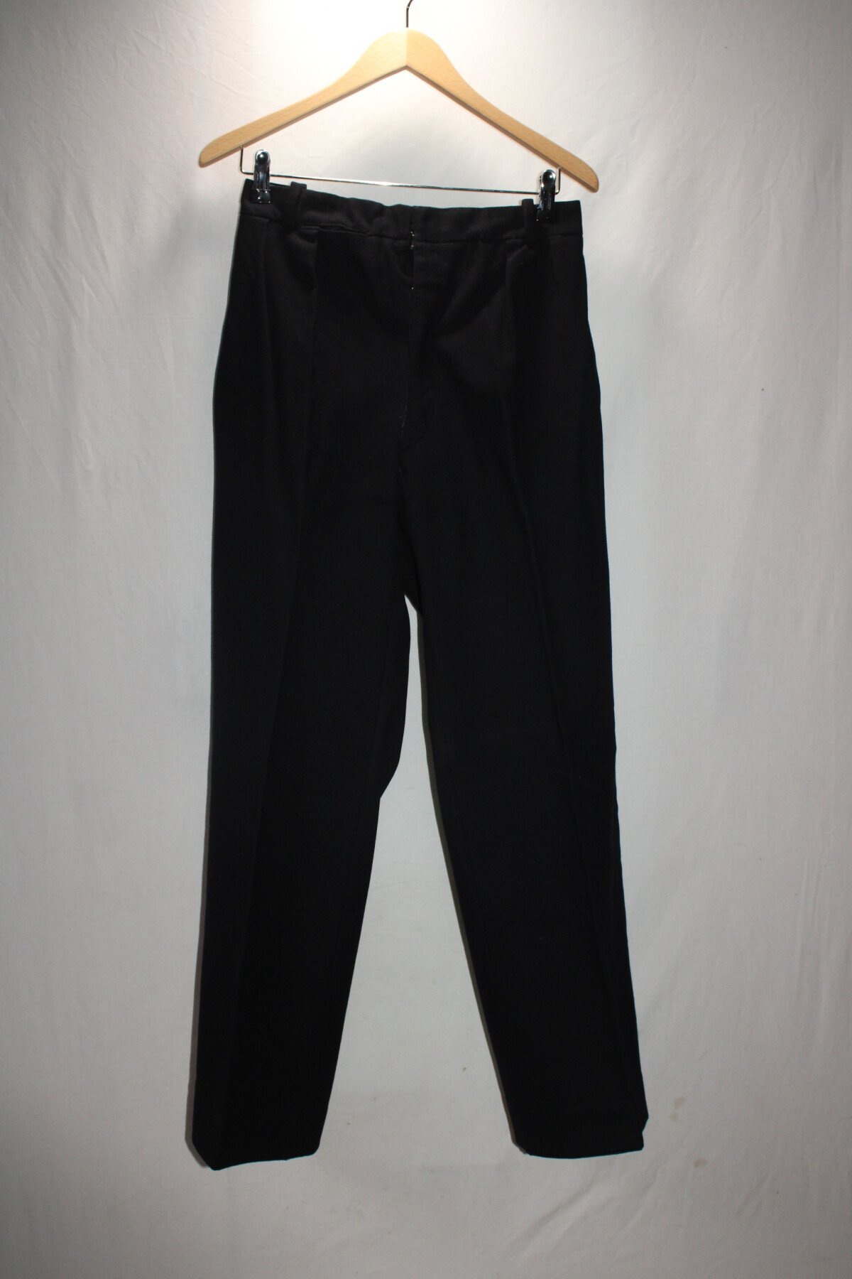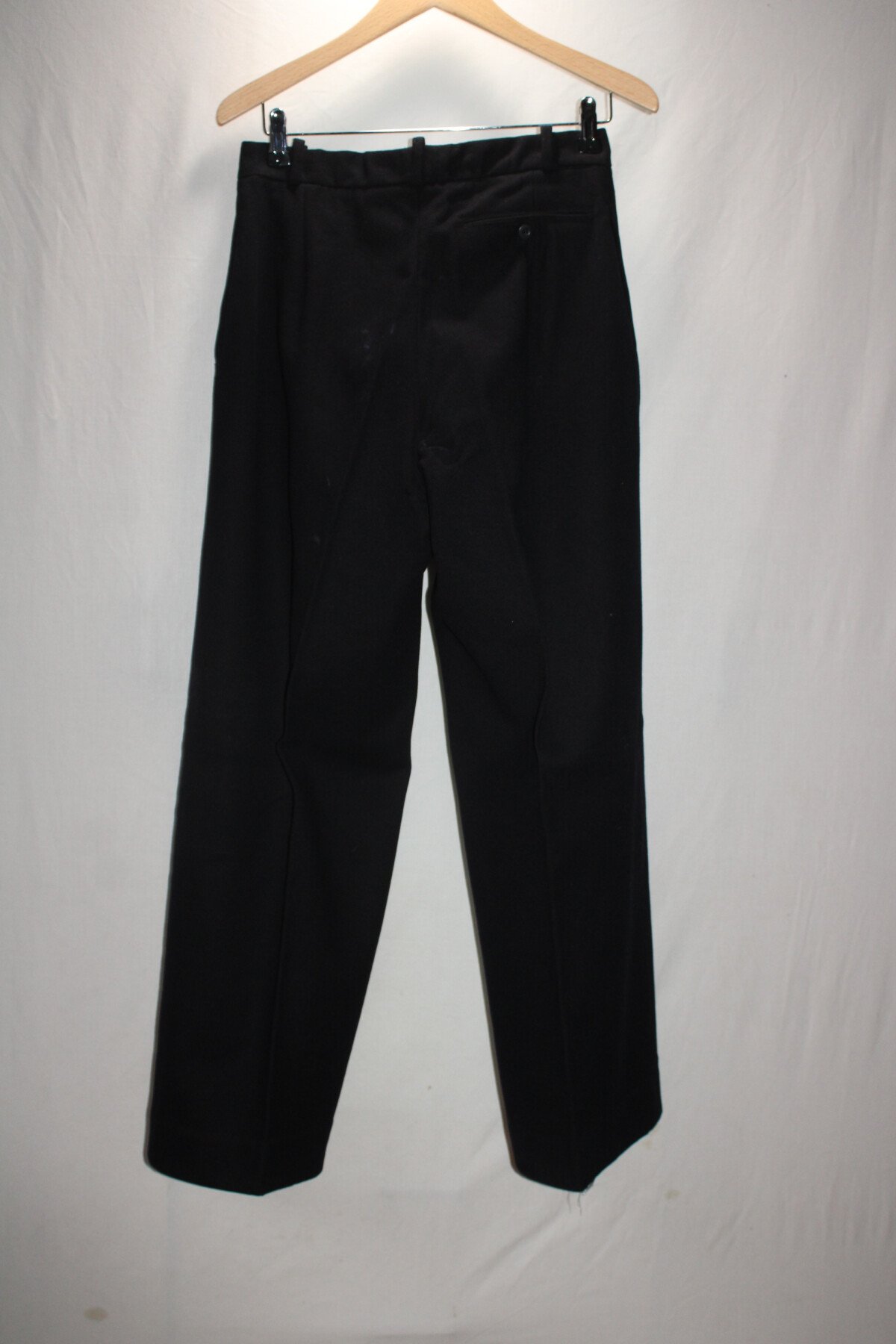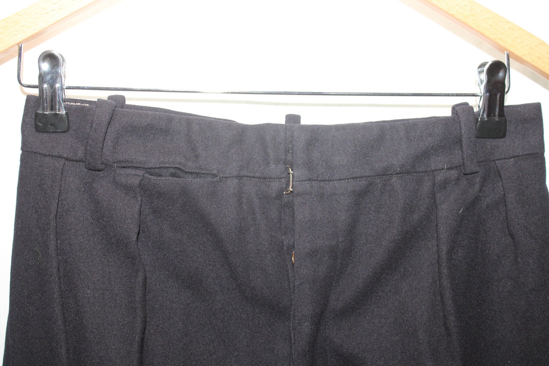 Vareuse en drap de laine de la marine nationale au grade de capitaine de corvette. Bel état général. Taille: largeur d'épaules 50cm à plat. Longueur de manche: 66 cm. Pantalon droit, un petit accroc à l'entre-jambe arrière. Tour de taille à plat 38cm, longueur totale 105cm, entre jambe 74cm.