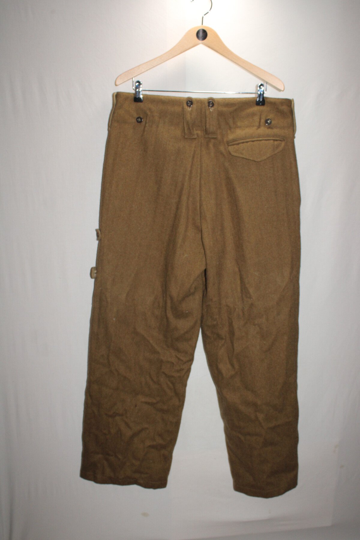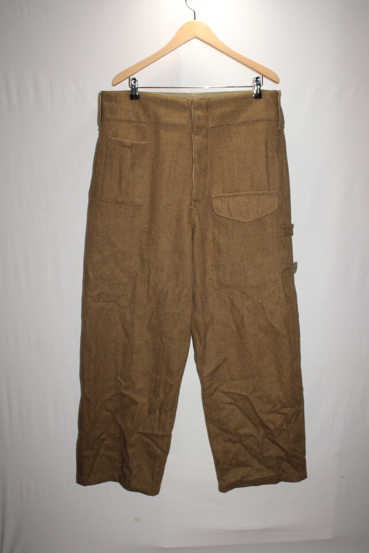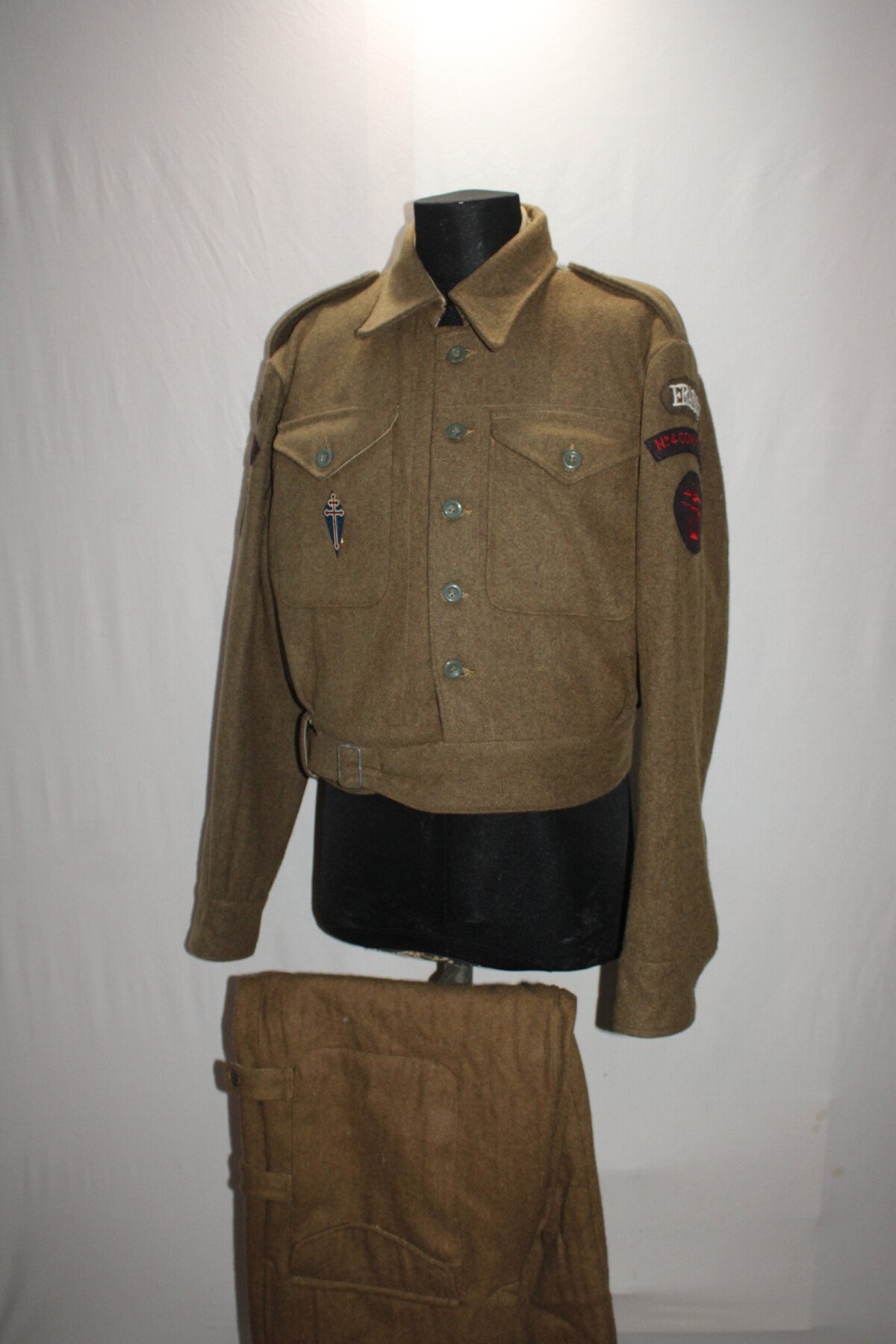 Fabrication en drap de laine du blouson de Battle Dress modèle 40 austérity monté en commando Kieffer. Insignes brodé. Blouson très peu porter et en très bon état général. Taille largeur d'épaule=51 cm, longueur de manche= 68 cm, Hauteur= 52cm( bas du col au bas). Pantalon avec pattes pour la dague. Taille à plat=47cm, longueur de jambe=113cm.