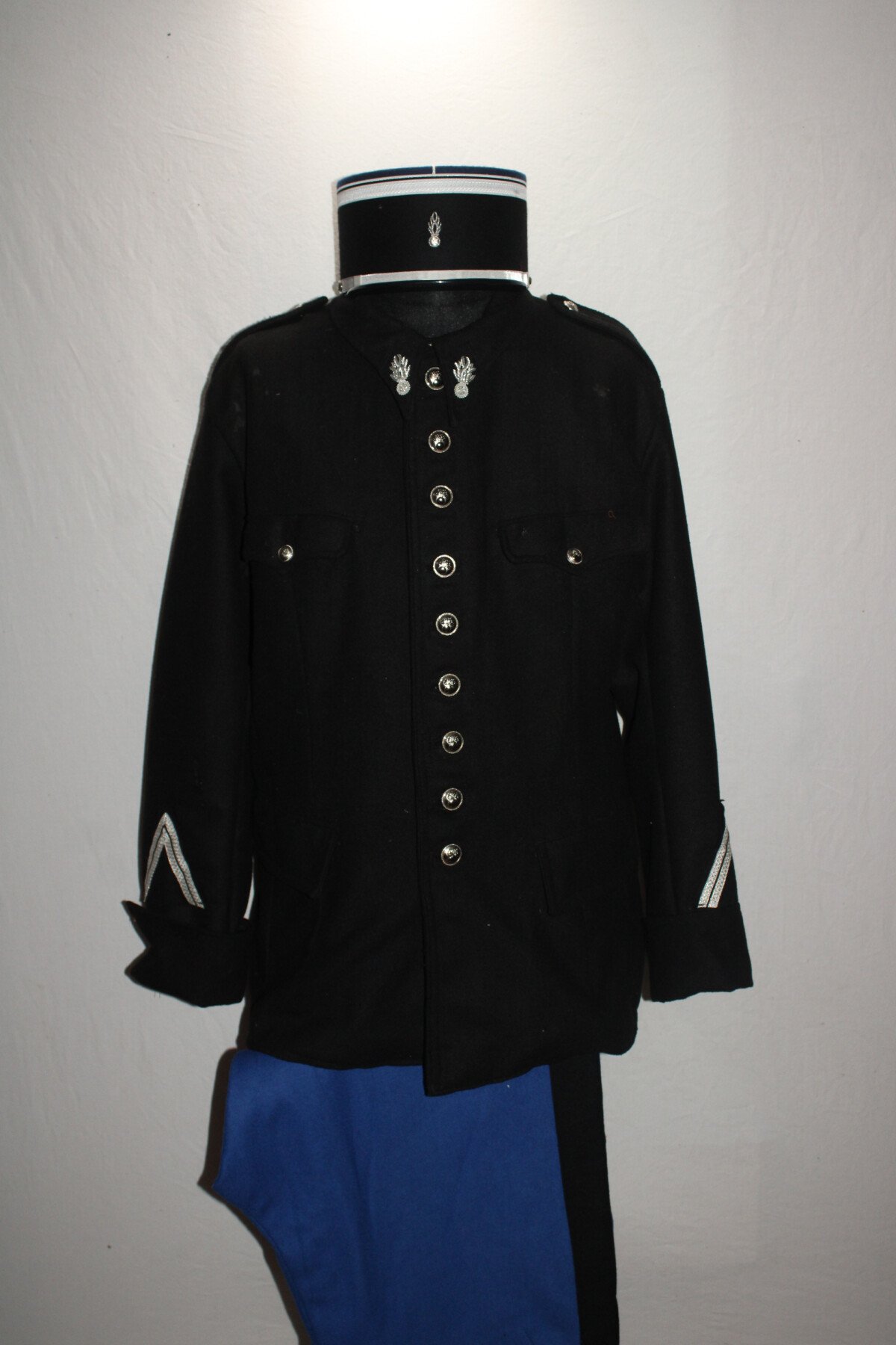 Uniforme de gendarme période 1939/1945 de chez héritage militaire. Comprenant une vareuse a col aiglon, avec boutons d'armes de la gendarmerie. Valeur neuve 495€. Largeur d'épaules:50 cm, longueur de manche= 65 cm, hauteur totale:75 cm. Pantalon de gendarme en drap de laine. Valeur neuf 110€. Tour de taille à plat: 62 cm, longueur de jambes: 110 cm, pas d'ourlet en bas de jambe. Un képi en taille 58.