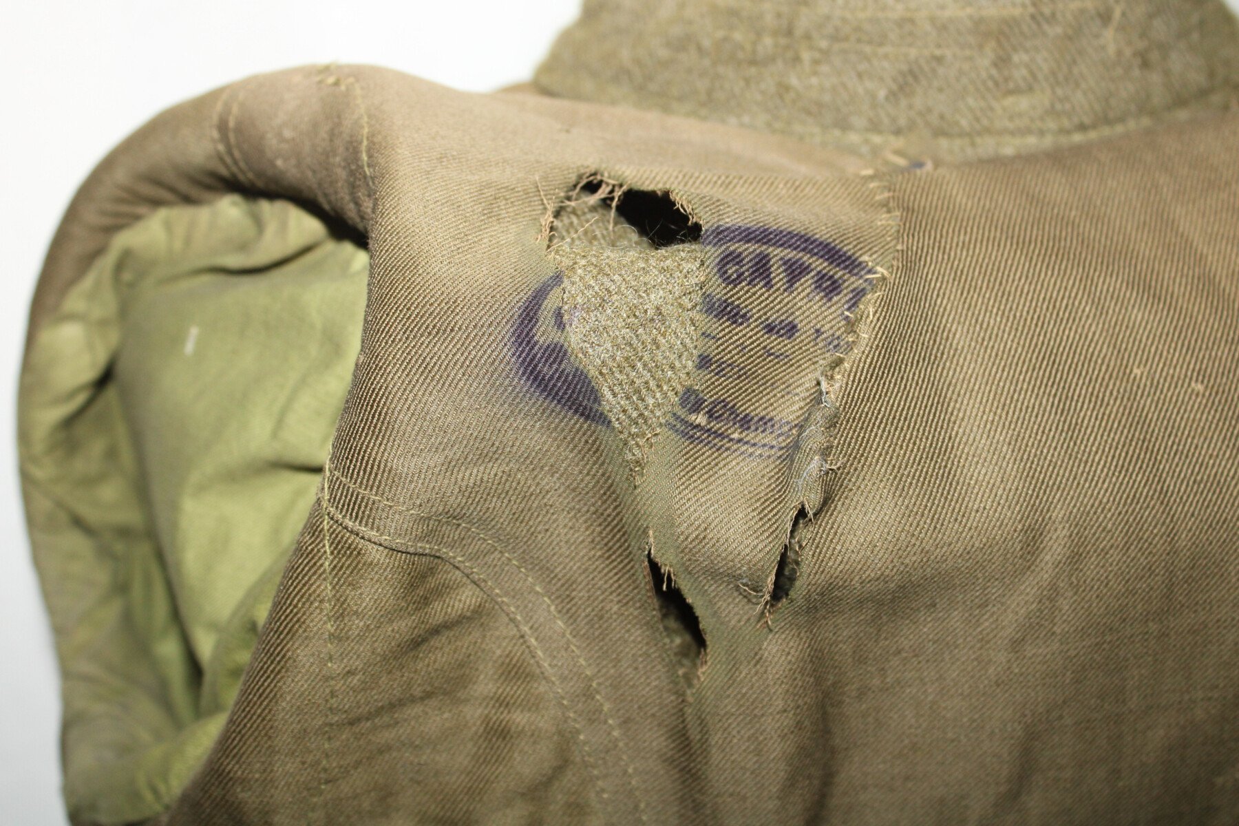 Belle vareuse troupe modèle 1912 en drap de laine, étiquette de fabrication présente. Un bouton de poche absent. Plusieurs réparations. Portée mais belle état de conservation. Tampon de...