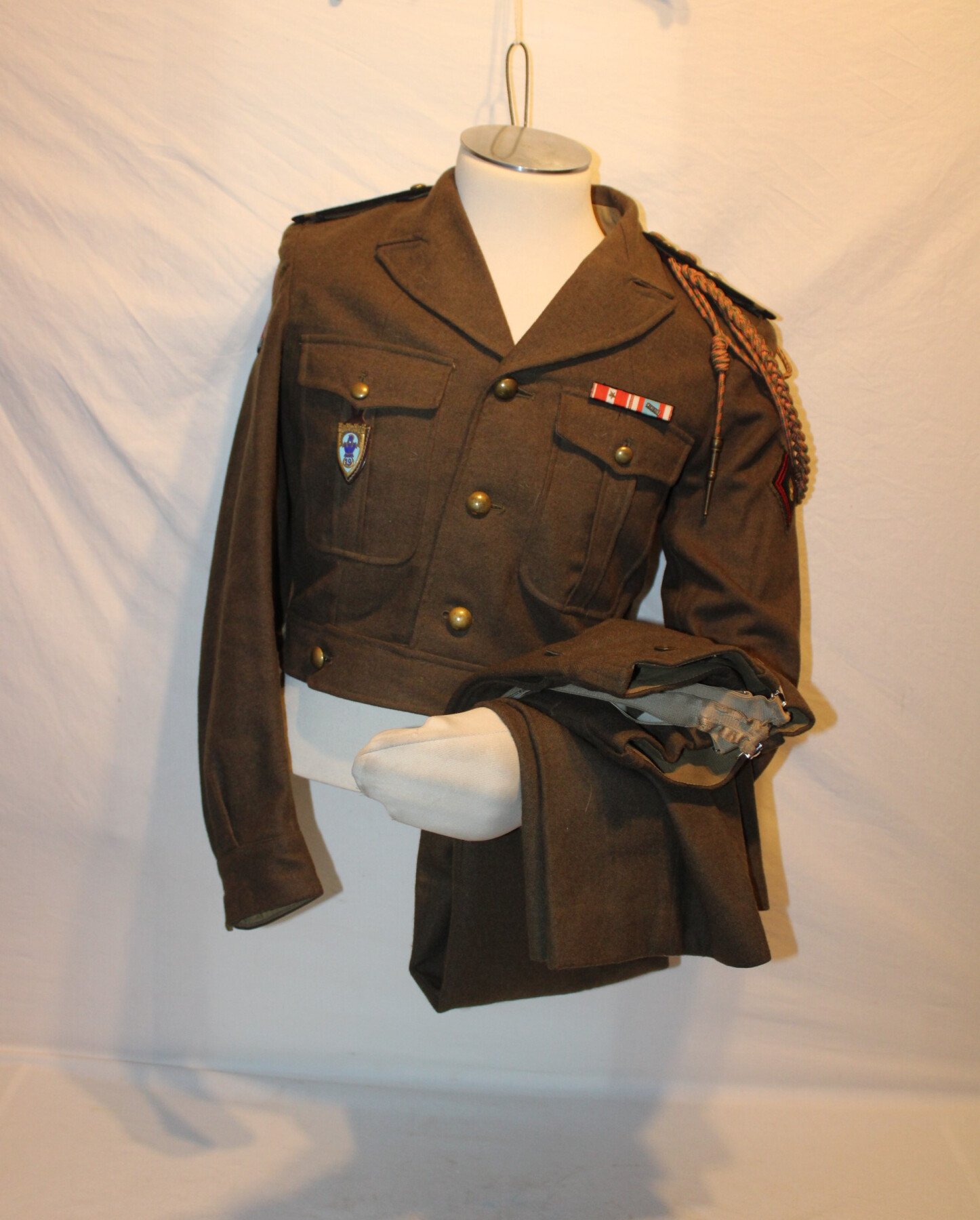 Bel ensemble composé d'un blouson modèle 46 et pantalon modèle 52 d'un sous lieutenant du 19e régiment de génie ensemble de la période guerre d'Algérie ,ensemble monté d'origine...