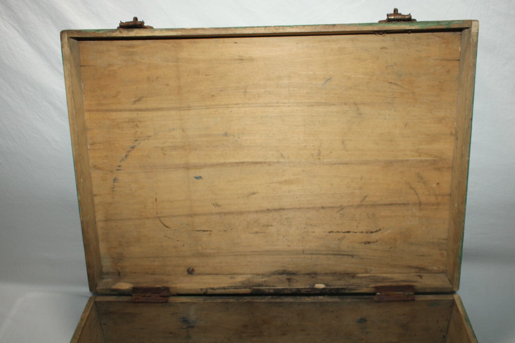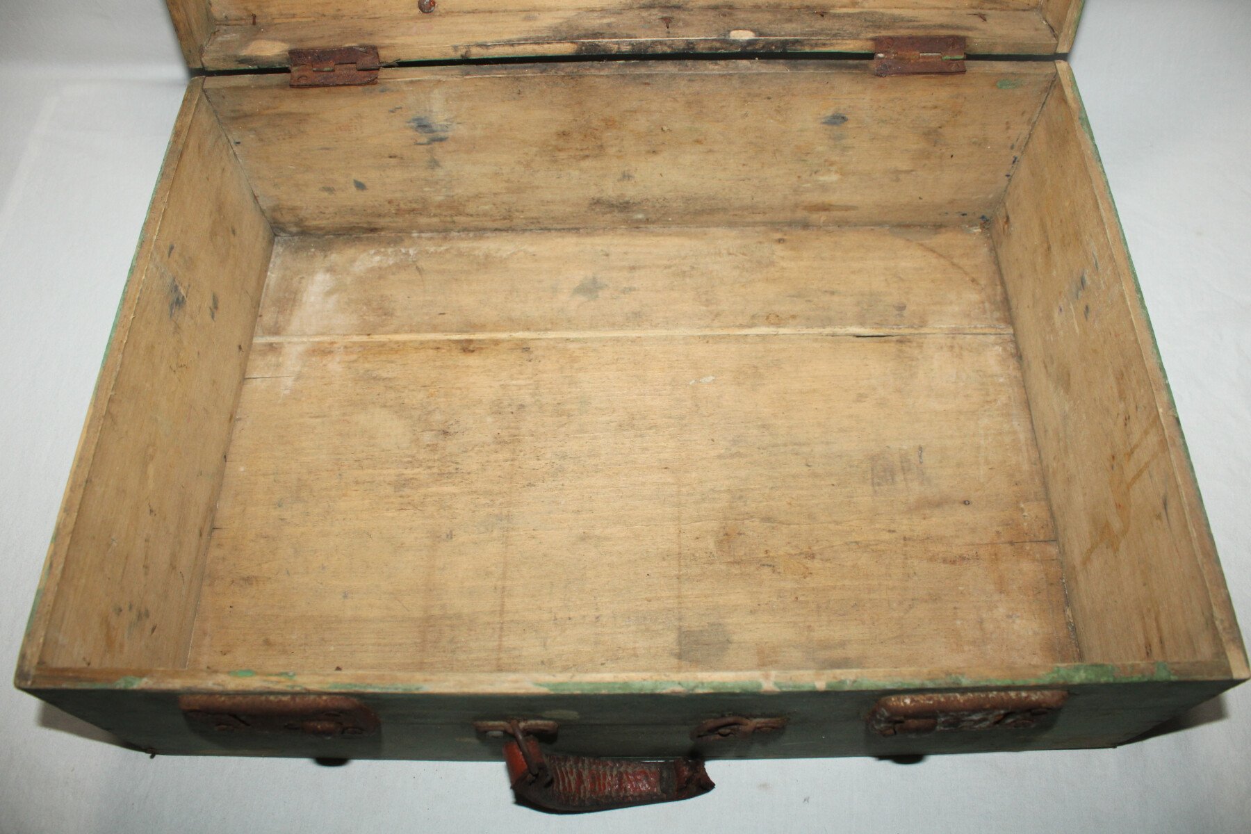 Valise en bois d'un musicien du 411e Régiment d'Artillerie Antiaérienne. Marquée musicien de garnison Alger, insigne du 411e RAA, manque la partie blanche .Poignet en cuir cassée sur un coté. Bois en bon état. Un loquet ferme mal.