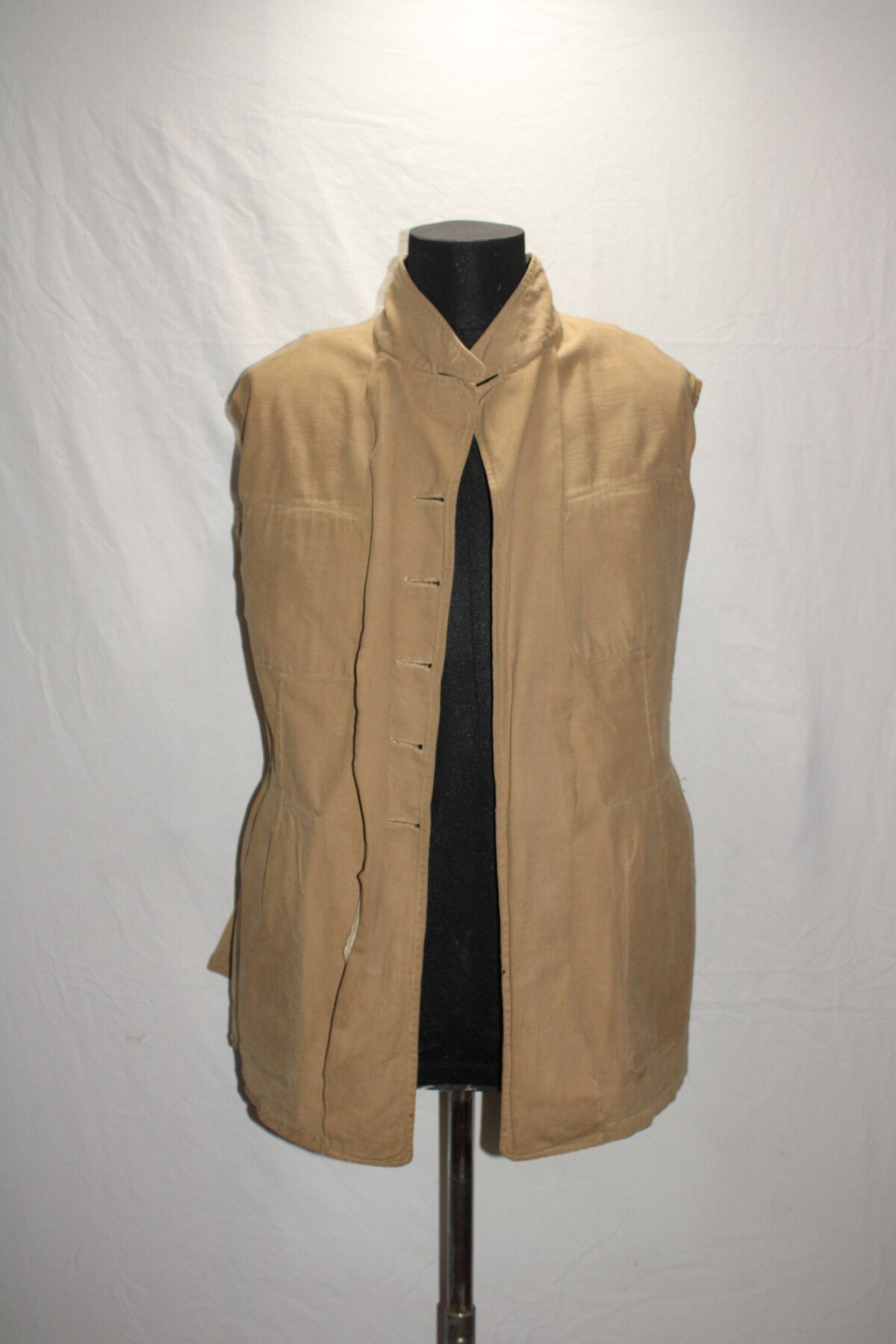 Vareuse en toile du modèle 1936 de l'armée de l'air, boutons d'armes de l'armée de l'air, les boutons avant sont fournis. Bride pour les pattes de cols. Pièce en très bon état. Pas de tampon visible. Largeur d'épaules de coutures à coutures=41cm, longueur de manches= 58 cm, hauteur totale ( du bas du col au bas de la veste) =70 cm.