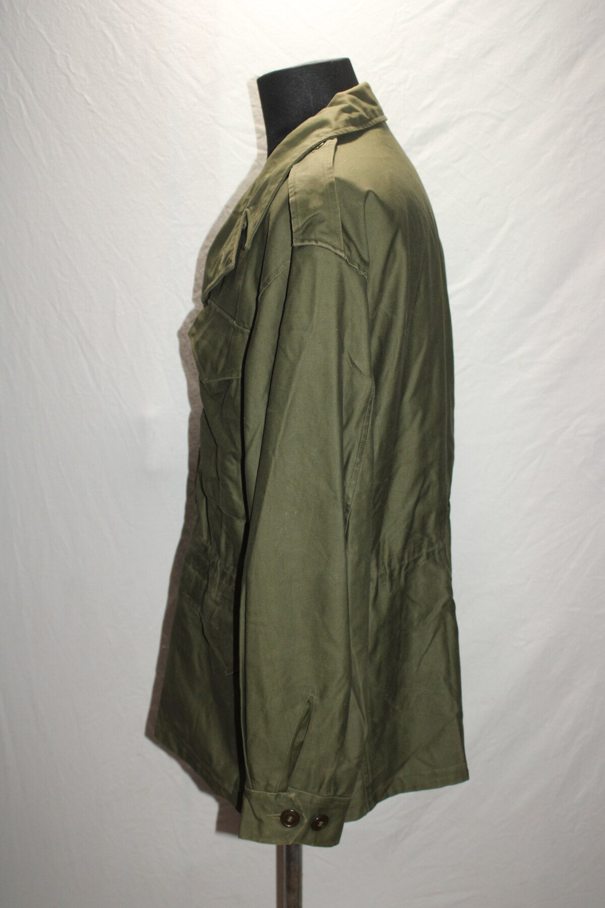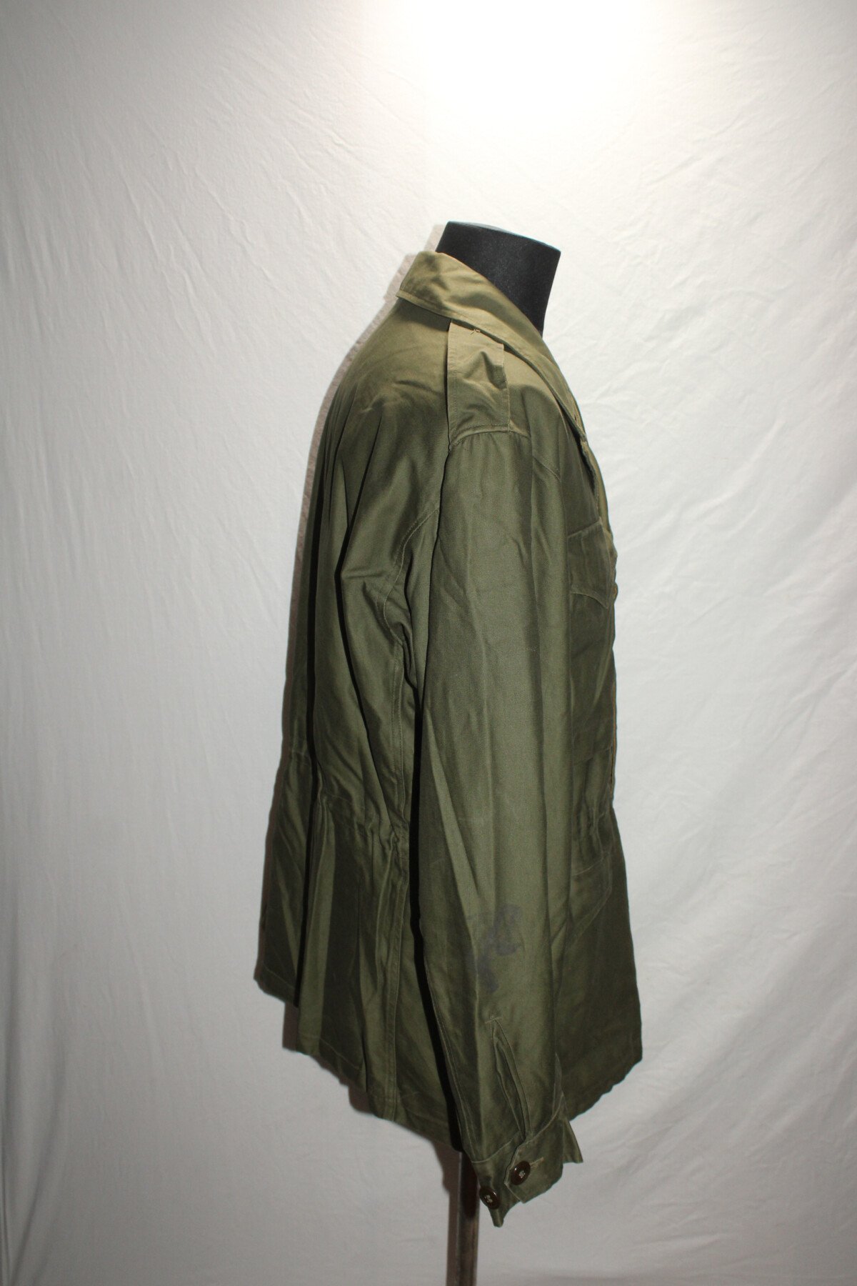 Field jacket M-1950, taille regular small, daté juin 1951. Très bel état général (juste une légère tache sur la manche droite. Taille à plat: largeur d'épaule=52 cm, longueur de manche =63...