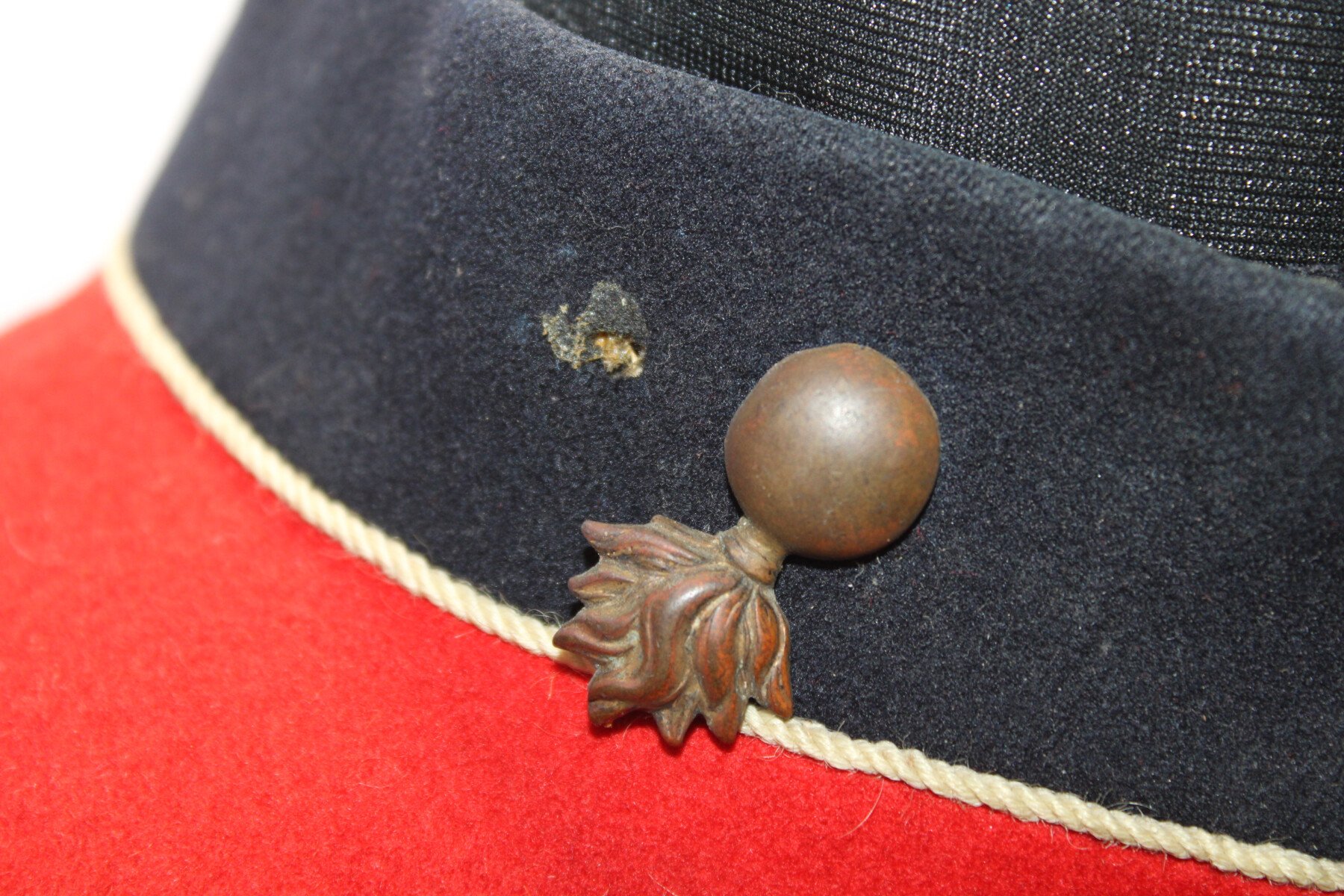 Scarlet Doublet du Royal scots fusilliers, chevrons de bonne conduite. Tout les boutons sont présents. Tittles RSF sur les pattes d'épaules. Une grenade au col a une attache cassée. Marqué RSF dans la veste, étiquette papier illisible. Tampon de date dans la manche. Bas de la doublure en partie décousue. Largeur d'épaules= 43cm, longueur de manche= 65 cm, hauteur totale= 63 cm.